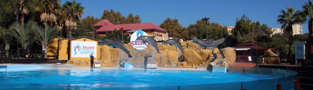 Unser heutiger Tagesausflug führte uns wieder nach Benalmádena, diesmal ins Selwo Marina Delfinarium. Mit 18,95 € pro Person Eintritt ziemlich kostenintensiv (Kind ist man hier nur bis 9 Jahre), aber dafür bekommt man dann auch einiges geboten. Affen, Pinguine (da ist es ziemlich kalt), Fische und Reptilien aus der Amazonasregion sowie eine Papageienshow mit verschiedenen Aras. Die Hauptattraktion dürfte aber die Show der Seelöwen und Delfine sein, die wir gleich zweimal besucht haben.