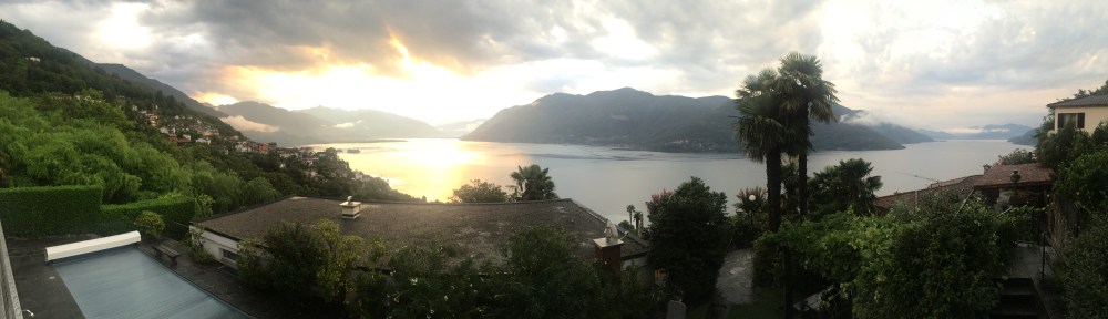 Sonnenaufgang über dem Lago Maggiore – noch versteckt sich die Sonne feige hinter dicken, schwarzen Wolken …