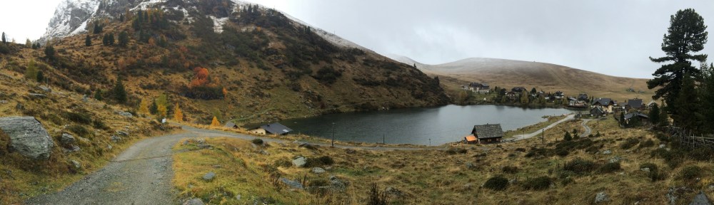 Naß und kalt, so könnte man den Tag zusammenfassen. Wir haben aber das Beste draus gemacht. Gegen Mittag machen wir uns auf einen kleinen Spaziergang auf Richtung Falkertalm. Auf dem Zirbenhütten-Rundweg wandern wir um die Heidialm bis zum Falkertsee. Es regnet noch immer, mal mehr, mal weniger, aber es ist trotzdem schön. Die Wälder haben schon eine schöne Herbstfärbung.
