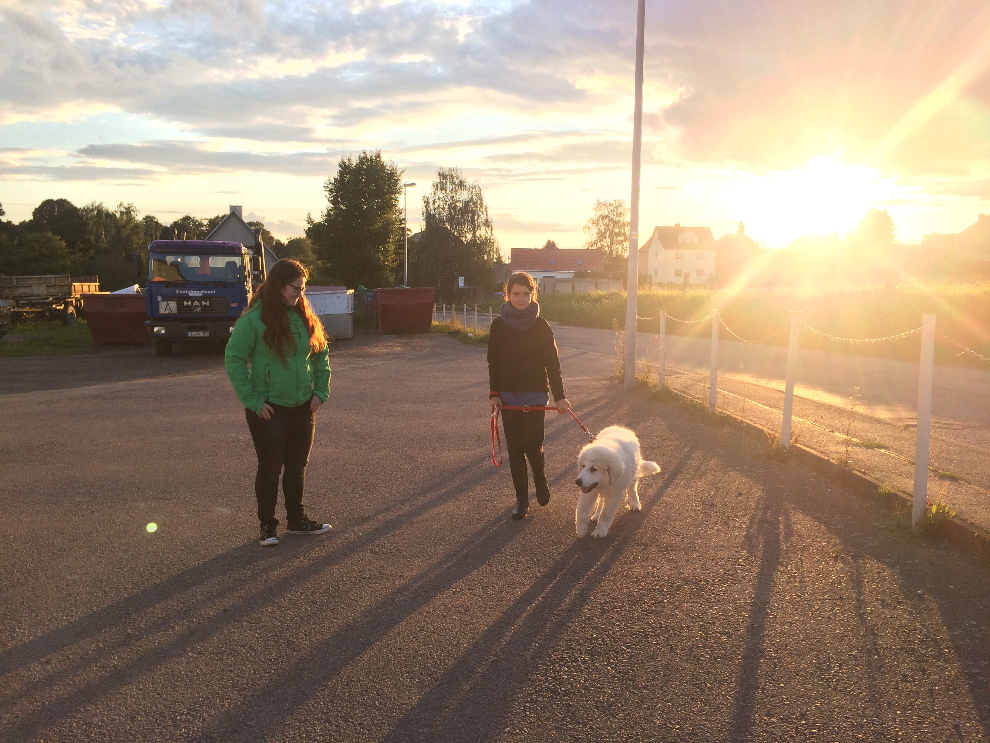 Nach dem Mittag – ich habe natürlich beim Zubereiten wieder aufgepaßt – Verdauungsschlaf. Das war heute besonders schön. Heute gab es wieder Sonne! Meine kleine Menschenschwester hat am Nachmittag wieder schön mit mir im Garten gespielt und geübt. Ich soll nämlich auf verschiedene Sachen hören. Pfffff, ich bin eine Prinzessin und ’ne Pyri. Aber wenn ich was prima mache, bekomme ich eine Belohnung 🤔, hmmmm. Hat auch was. Beim Abendfutter zubereiten durfte ich wieder mit zugucken. War wieder lecker heute. Danach habe ich mich natürlich ordnungsgemäß ausgeruht. Und dann waren wir, mein großer Mensch und meine beiden Menschenschwestern, wieder zum Abendspaziergang auf meinem Feld – bei Sonnenuntergang! Ooooohhhhhh, war das schön. Bin wieder mit meinen beiden Mädels schön über die Wiese geflitzt, habe schön geschnuffelt und am Gras gezupft. Zu Hause habe ich dann noch ganz kurz durch meinen Garten geschnuffelt und mich dann gleich hingelegt. Bis es richtig dunkel war und mein großer Mensch zum Schlafen in meine Villa „Idefix“ gebracht hat. Gute Nacht! 🐶👸🏼