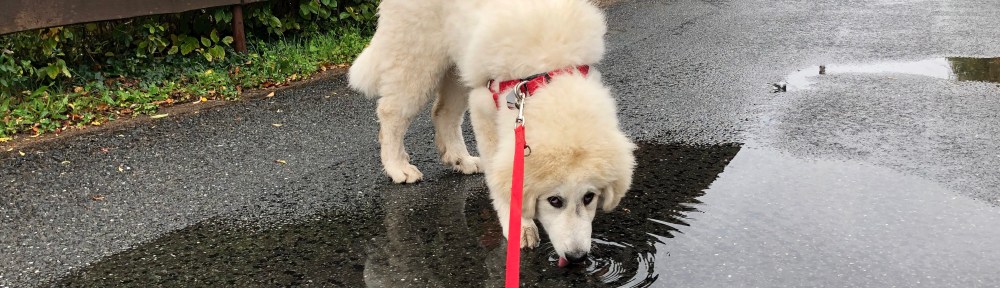 Vor dem Abendfutter habe ich noch mit meinem großen Menschen in meinem Garten getobt. Das war toll. Da durfte ich ganz wild sein. Ich bin viel schneller als der! Manchmal so schnell, daß ich meinen superschnellen Beinchen gar nicht folgen kann. Und dann, platsch, falle ich über mich drüber. So schnell bin ich. Dann gab es Abendfutter und nach meiner Ruhepause war meine kleine Menschenschwester noch bei mir. Die hat mir schon mein Ausgehgeschirr angelegt. Damit sehe ich nicht nur wunderschön aus, das heißt auch, es geht gleich los zum Feldwiesenabendspaziergang. So war es dann auch. Heute bin ich aber nicht so viel rumgerast. Hatte ja gerade erst mit meinem großen Menschen getobt und war dann noch mit meiner kleinen Menschenschwester im Garten. Die großen, schlanken, braunen Hunde, die Rehe also, waren heute auch nicht da. Vielleicht hat ihnen das Wetter ja nicht so gefallen. Ich bin ein Herdenschutzhund, ein echter Outdoorhund! Mich stört kein Wetter! Haha! Ich bin eine Prinzessin und ’ne Pyri!