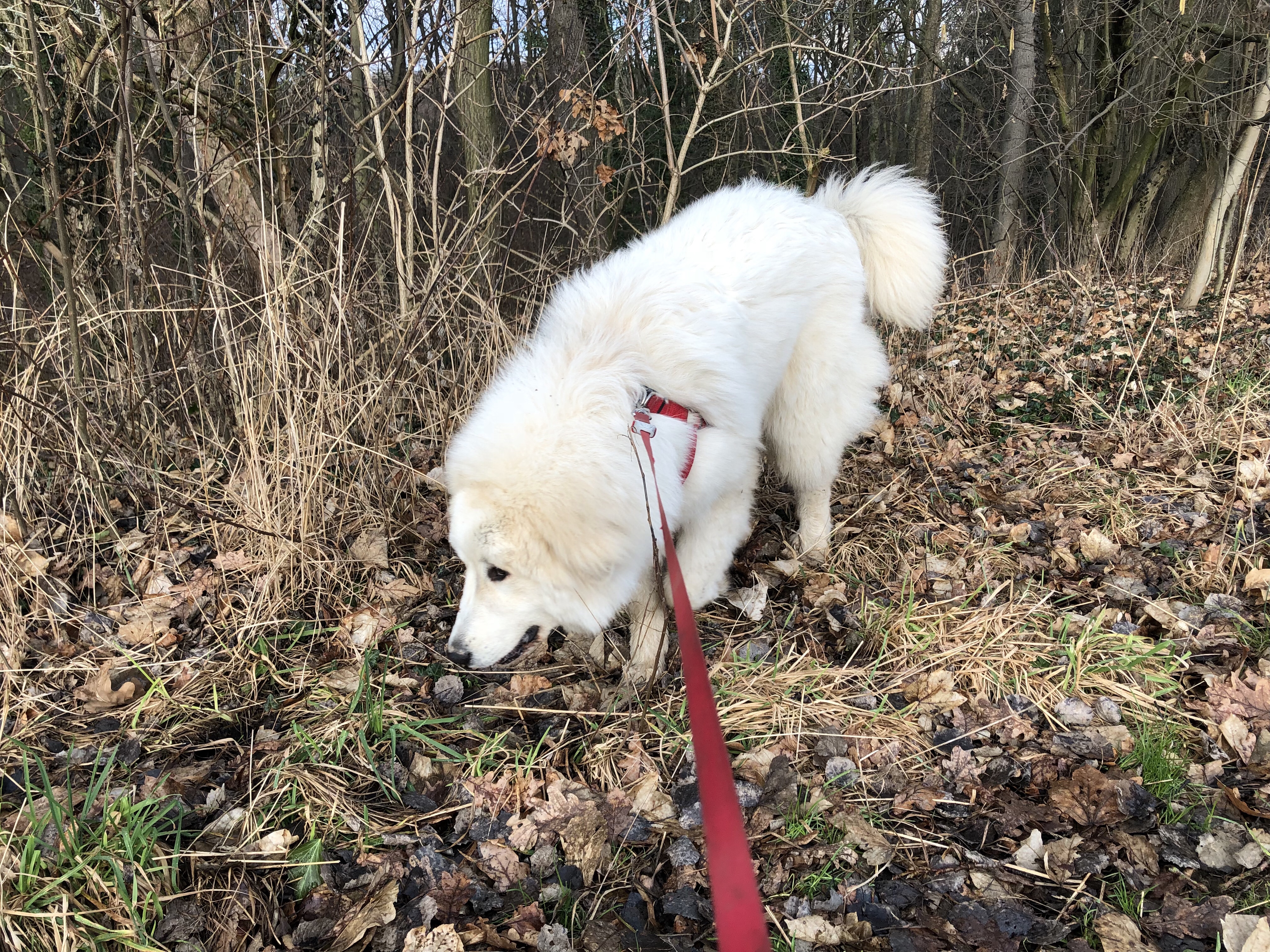 Dann war die liebe Sonne da und ich habe mit meinem großen Menschen meinen Morgenspaziergang gemacht. Wir sind durch mein Wohngebiet gelaufen und über das Feld in das Wäldchen. Da sind wir dann durchgelaufen. Die ganzen müden Bäume sind endlich aufgewacht und liegen da jetzt gar nicht mehr rum. Dann sind wir an der großen Wiese entlang und da haben wir vier Rehe gesehen. Auf der anderen Seite von der großen Wiese. Am Waldrand. Rehe sind diese großen, schlanken, braunen Hunde. Und dann sind wir um die Wiese rumgelaufen und durch den anderen großen Wald, da wo vorher die Rehe waren. Hier war die Bella noch nie. Und das war schön. Ganz neu für mich. Und viel zu schnuffeln. Und auf dem Rückweg haben wir noch einen Hund getroffen. In dem Wald. Der war ganz lieb. Und dann ist die Bella ausgerutscht. Mit ihrem Vorderpfötchen. 🐶🤭😢😭 Autsche, autsche, autsche. Das hat ganz schlimm weh getan. 🐶😢😭 Auatsch, das war gar nicht schön. Da hat die Bella geweint. Und mein großer Mensch hat gleich mein ganzes Vorderbeinchen abgetastet und mich beruhigt und gestreichelt und dann mein Autschbeinchen ganz sachte massiert. Das war schön. Und beruhigt hat mich mein großer Mensch und mein Beinchen massiert und das hat gut getan und dann war es schon besser. Die kleine Bella war ganz aufgeregt, weiiil, das hat doch so weh getan. Wir sind dann weitergelaufen. Schön langsam. Und zu meinem kleinen Bächlein im Wald da habe ich meine Pfötchen gekühlt und lecker Wasser getrunken. Evian! Ich bin nämlich eine Pyrenäenberghündin. Aus den Pyrenäen. Das ist in Französien. Und deshalb trinke ich Evian. Aus dem kleinen Bächlein. Und dnn sind wir nach Hause gegangen. Durch mein Wohngebiet. Zu Hause waren dann meine Menschenschwestern noch bei mir und dann habe ich mich ausgeruht.