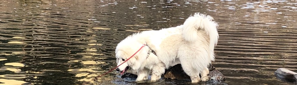 Und dann habe ich gleich einen Spaziergang gemacht. Mit meinem großen Menschen und meiner kleinen Menschenschwester. Wir sind bis zum großen Fluß mit dem komischen Namen gelaufen und da durfte die Bella dann rein. An der Wackelbrücke. Da bin ich im Fluß mit dem komischen Namen gewesen. Mit meinen Füßchen und bis zum Pyribäuchlein bin ich drin gewesen. Das war schön. Das machen wir mal wieder. Und zu Hause habe ich mich ausgeruht.