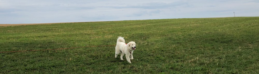 Dann sind wir abendspazierengegangen. Nur mein großer Mensch und ich, die Bella. Wir sind zu meiner großen Feldwiese gegangen. Und heute sind wir nicht über das Feld gelaufen. Nööööö, wir sind nur über meine große Feldwiese geflitzt. Mit me8ner langen roten Feldleine. So wie früher, als ich noch eine kleine Pyrenäenbergprinzessin war. Über meine Feldwiese. Und da saß plötzlich eine Katze. Mitten auf meiner Feldwiese. Die wollte ich ganz wild wegjagen. Aber mein großer Mensch hat mich zurückgerufen. Und ich bin ja brav. Aber dann habe ich die Mietzekatze doch noch von meiner Feldwiese gejagt. Aber nicht ganz wild. Nur so. Das war lustig. Dann sind wir weiter über die große Feldwiese gelaufen. Und ich habe geschnuffelt. Ich habe dann noch mein Häufchen gemacht und da mußten wir dann noch durch mein Wohngebiet zum Hundeklo laufen. Danach sind wir nach Hause gegangen und ich war noch in meinem Garten.
