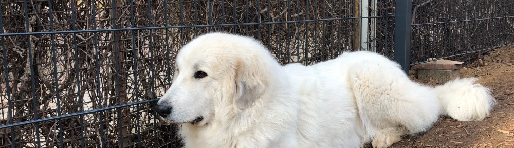 Ich habe heute wieder auf meinen Garten aufgepaßt. Und auf meinen Zaun. Der ist ganz neu. Und noch gar nicht fertig. Dann war ich auf meiner Terrasse. Weiiil, heute wr den ganzen Tag graues Matschepampewetter. Meine liebe Sonne ist auch gar nicht da gewesen. Die mag das graue Matschepampewetter nicht. Die mag nur schönes Wetter. Und ihre Bella. Das bin ich, die Bella. Ich bin eine Herdenschutzhündin.