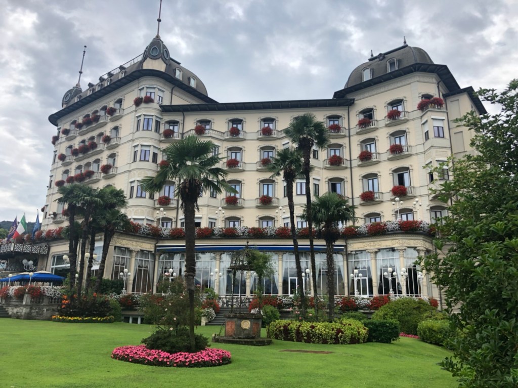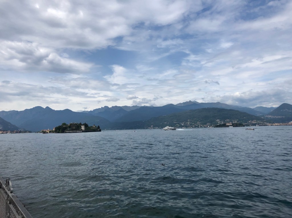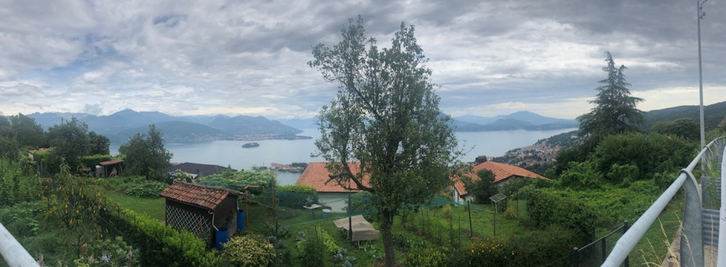 Nach dem Frühstück – Bella darf wieder mit drin bleiben – gehen wir auf die Terrasse und überlegen, was wir mit dem heutigen Tag anfangen. Wir beschließen, nach Stresa zu fahren, ein wenig durch den Ort und am See entlang zu schlendern und essen zu gehen. So machen wir es dann auch. Am späten Vormittag fahren wir los. Unterwegs bietet sich ein herrlicher Blick über Stresa und den Lago.