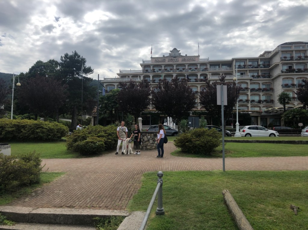 In Stresa stellen wir das Auto auf dem Parkdeck des Conad ab. Bevor wir zurückfahren wollen wir hier noch etwas zum Abendessen holen. Dann gehen wir zur Uferpromenade. Entlang der Seestraße sehen wir die mondänen Bauten der Hotels. Das sind schon beeindruckende Bauwerke. Wir gehen gemütlich die Uferpromenade in Richtung Baveno entlang. Im Café „Daniel‘s Bar“ suchen wir uns wieder einen schönen Platz am Rand, damit Bella möglichst ungestört ist. Wir bestellen Getränke, Pizza und Salat. Auch hier wieder sehr freundliche Bedienung und es geht sehr schnell, auch wenn die Terrasse reichlich mit Gästen gefüllt ist. Zum Abschluß trinken wir noch einen Café espresso und einen Café corretto – der ist richtig gut und sehr „corretto“. „Daniel‘s Bar“ dürfte durchaus zur sehr gehobenen Preisklasse gehören. Dafür hat man hier auch einen sehr schönen Blick auf den See und die Inseln.