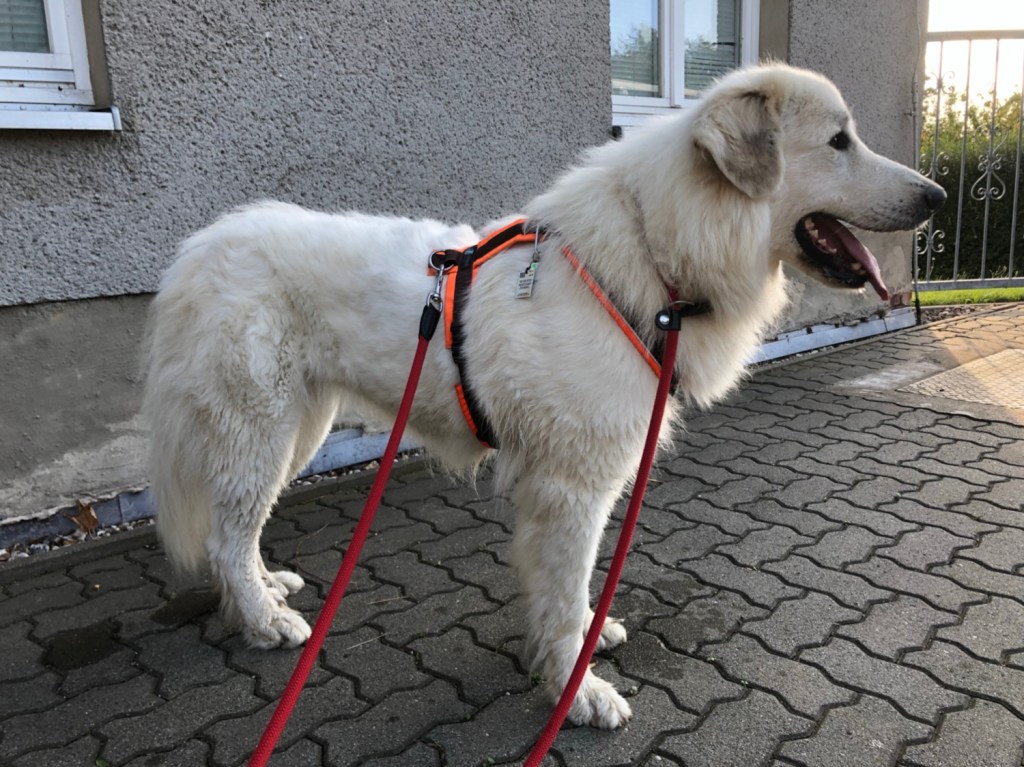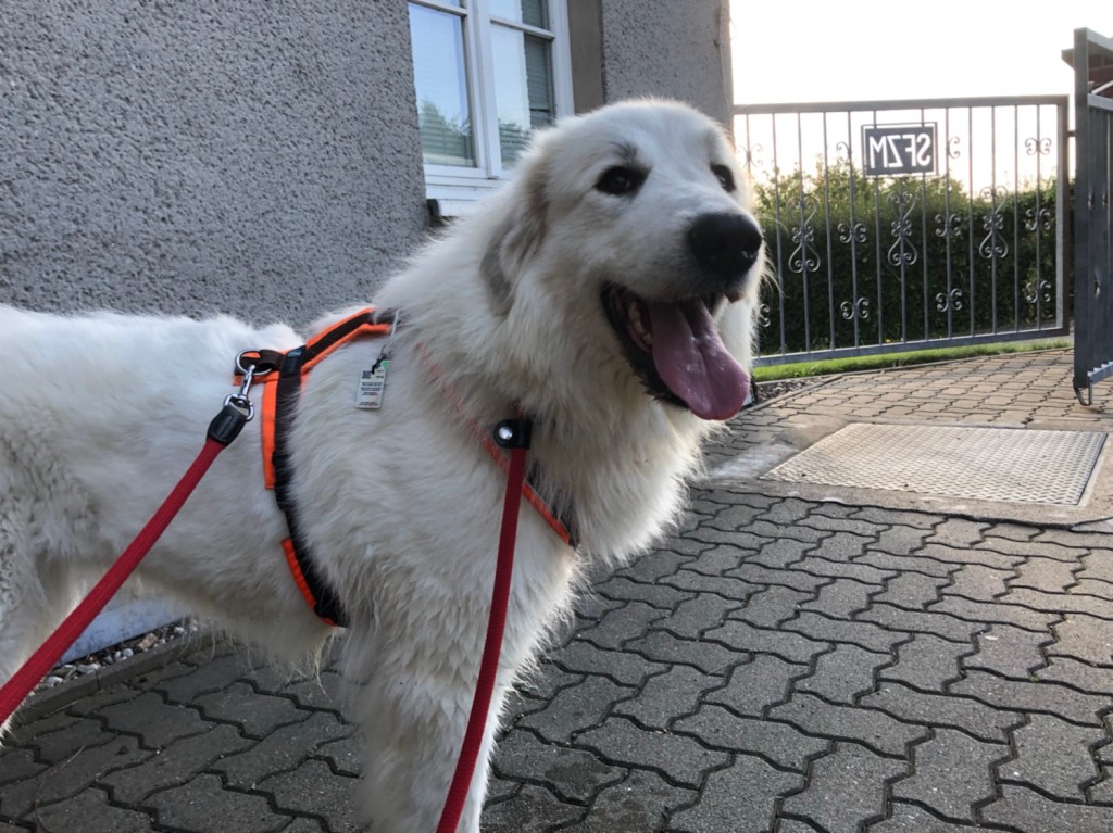 Dann sind wir aus dem Stadtpark raus und da habe ich den Schäferhund gesehen, den ich bei mir zu Hause manchmal schimpfen höre. Der war auch spazieren und ist gerade nach Hause gegangen. Wir sind aber weiter zum Tanztraining von meiner kleinen Menschenschwester gegangen. Dort habe ich mich ausgeruht, gefuttert und dann auch nochmal was getrunken. Bis meine kleine Menschenschwester und meine große Menschin gekommen sind. Die sind dann zusammen nach Hause gefahren und ich bin mit meinem großen Mensch gelaufen.