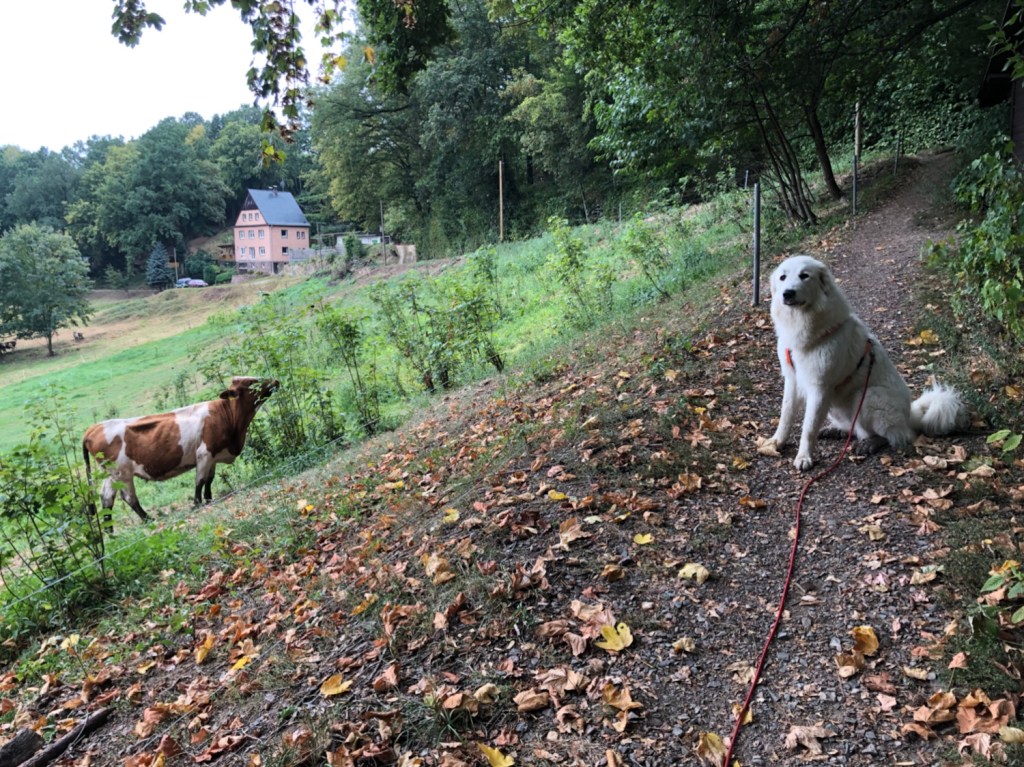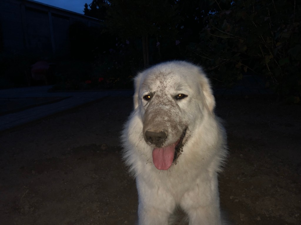 Heute ist wiedermal Wochenende. Da können alle ausschlummern. Ich auch. Mich hat heute mal mein Menschenopi begrüßt und in meinen Garten gelassen. Da hat es geregnet. Aber das stört mich nicht. Ich bin eine Herdenschutzhündin. Wer mich noch nicht kennt, ich bin Annastasia Isabella Prinzessin Idefix vom Ehrenberger Hof (A.I.P.I.v.E.H.), aber Bella genügt. Ich bin eine Pyrenäenberghündin. Eine wunderschöne. Eine der schönsten überhaupt. Da kann man nix machen 🐶🤷🏼♂️🐶. Das ist nun mal so. Wegen meiner Mami, der Ivy Prinzessin Idefix vom Vieringhaus. Die ist auch eine der schönsten überhaupt. Und ich bin nun mal ihre Tochter. Ich bin die Bella. Und meine Mami ist eine Chefin. Ich bin auch eine Chefin. Meine Mami wohnt auf dem Ehrenberger Hof. Obwohl sie gar nicht so heißt. Ich wohne nicht auf dem Ehrenberger Hof, obwohl ich so heiße. Aber ich bin da geboren. Und meine jüngste Schwester, die Anna-Sissi Prinzessin Idefix vom Ehrenberger Hof, die wohnt da, ist da geboren, heißt so und ist auch eine der schönsten überhaupt, weiiil, meine Mami, die Ivy Prinzessin Idefix vom Vieringhaus ist auch die Mami von der Sissi und unser Papi, der Hadrien du Pic de Viscos, der ist ein echter Französianer, der ist nämlich in den Pyrenäen geboren und die sind in Französien, ganz unten. Da wo meine Omi, Flanelle de la Chapelle de Pouyasp wohnt. So, und für alle, für die das jetzt zu verwirrend war, fasse ich das wichtigste nochmal kurz zusammen: ich bin die Bella. Hätte jeder aber auch selbst drauf kommen können. Dann ist mein großer Mensch zur Begrüßung in meinen Garten gekommen. Und der hat mein Frühstücksfutter gemacht. Ich habe aber gar keinen Hunger. Es hat immer noch geregnet.