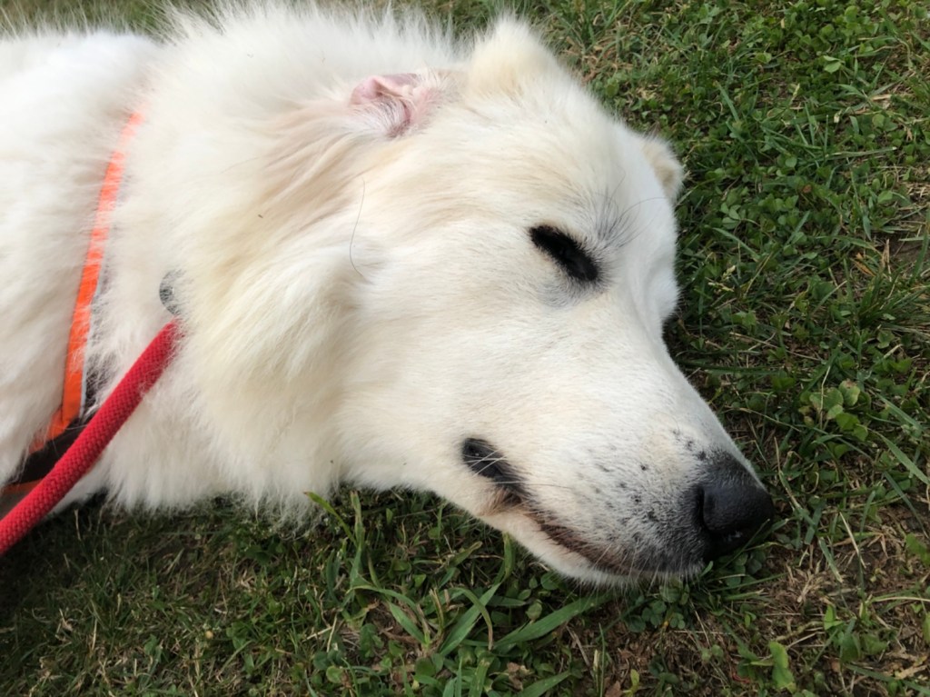 Zu Hause habe ich noch im Garten mit meinem großen Mensch gekuschelt. Ich habe wieder so getan, als würde ich schon schlummern. Und dann haben wir geschmust. Und mein großer Mensch hat mein kleines Pyribäuchlein gekrault. Das mag ich. Ich will immerzu mit meinen Menschen kuscheln. Das ist so schön. Aber dann sind wir in meine Kellerwohnung gegangen. Da habe ich noch zu knabbern bekommen. Eine ganz neue Kaustange war dabei. Die habe ich gleich mit in mein kleines rotes Ferienhäuschen genommen und mich da auf mein Kissen gekuschelt. Und dann habe ich schön geschlummert. Gute Nacht! 🐶👸🏼