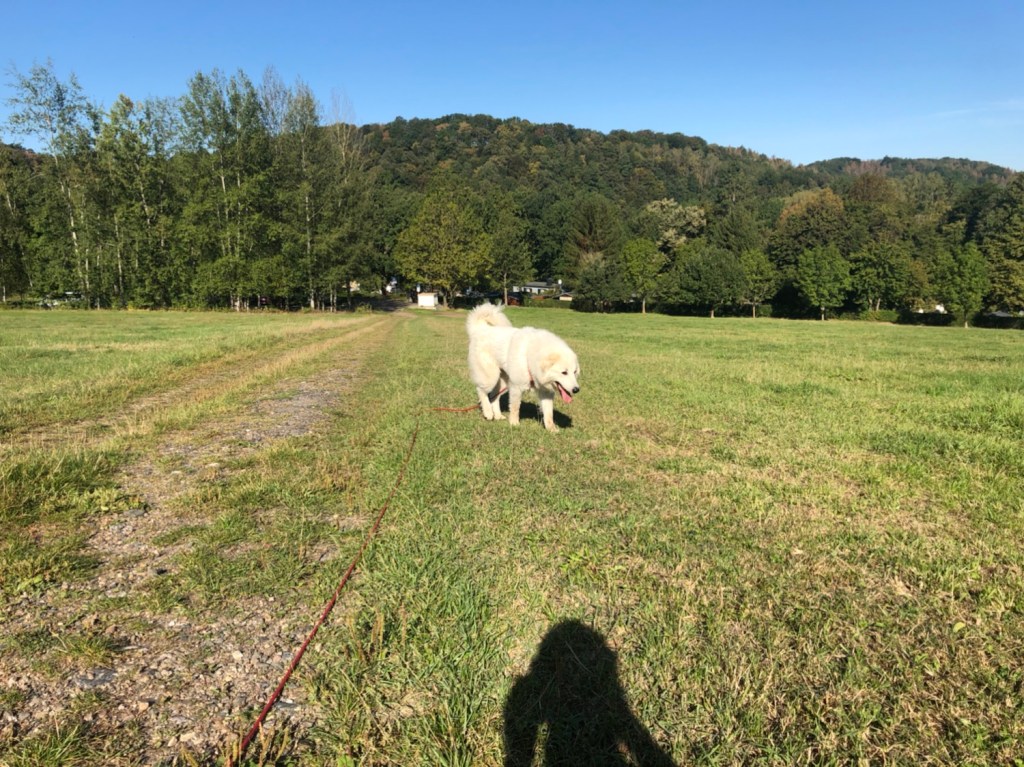 Dann ist erstmal meine große Menschenschwester gekommen. Das ist schon immer mal ein gutes Zeichen. Mein großer Mensch braucht immer länger. Aber dann ist er auch da gewesen. Und dann ging es los. Wir sind durch die Siedlung gelaufen und dann weiter zur Frau Dobermann. Die hat natürlich gesprochen. Wie immer. Das kenne ich schon. Dann sind wir weiter zum großen Fluß mit dem komischen Namen und dann zur Wiese. Die war noch ganz naß. Über die Wiese sind wir zum Wald und dann an der alten Fuchsfarm vorbei zu meinem kleinen Bächlein. Dort habe ich getrunken und da kam dann ein kleiner Hund. Ich war aber ganz lieb. Der kleine Hund auch. Und hinterher kam dann auch gleich noch meine Freundin, die schwarze Schäferhündin. Dann sind wir auch weiter den Berg hoch durch den Wald. Und auf der Hälfte vom Berg hat mein großer Mensch gemerkt, das seine Uhr weg ist. Da mußte er nochmal den ganzen Weg zurück um die Uhr zu suchen. Ich bin bei meiner großen Menschenschwester geblieben. Ich habe keine Uhr, die ich verlieren kann.