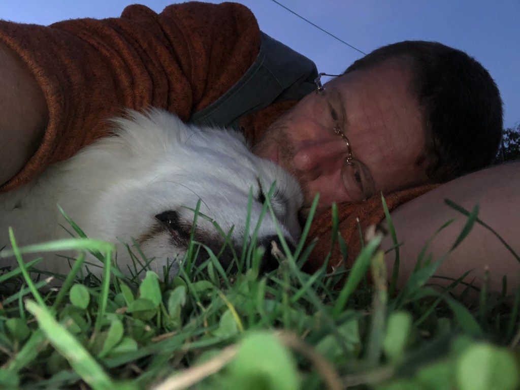 Zu Hause habe ich meine Belohnung bekommen. Die habe ich auch verdient! Jawoll! Dann habe ich mich auf die Wiese gelegt und auf meinen großen Mensch gewartet. Wegen Kuscheln! Und dann ist mein großer Mensch zu mir zum Kuscheln gekommen. Da haben wir noch ganz lange zusammen auf der Wiese gesessen und gelegen. Das gefällt der Bella.