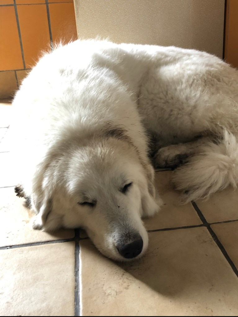 Nachmittags War ich auch mal in meiner Kellerwohnung, weiiil, da hat es geregnet. Und meine Menschen machen mir da auch meine Kellertür auf, damit ich in meine Kellerwohnung kann. Da bin ich aber immer nur kurz. Ich bin eine Herdenschutzhündin, die ist immer draußen!