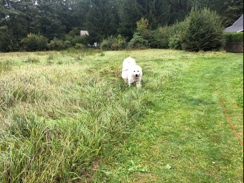 Dann bin ich mit meinem großen Mensch wieder zurück in den Wald, wir sind den Berg hoch und auf die Wiese hinter dem Wald. Und da habe ich meine Freundin, die schwarze Schäferhündin getroffen. Die war auch spazieren. Macht man sonntags eben so. Sonntagsspaziergang. Wir haben uns auch ganz kurz beschnuffelt. Dann ging es quer über die Wiese bis zum Weg an der alten Fuchsfarm. Wir sind dann noch kurz am kleinen Bächlein gewesen, ich habe getrunken und dann sind wir durch den Wald in mein Wohngebiet und zurück nach Hause. Da habe ich meine Belohnung bekommen und mich dann ausgeruht. War ja auch zeit für meinen Pyriprinzessinnenschönheitsschlaf.