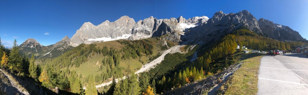 Für heute haben wir einen Ausflug an den Dachstein geplant. Das Wetter soll super werden, das wollten wir natürlich nutzen. Nach dem Frühstück ging es los. Zuerst noch ein kurzer Stop beim Bäcker um die Lieferung unserer Frühstücksbrötchen für die Urlaubswiche zu klären. Danach ging es zur mautpflichtigen Dachsteinstraße und auf den Parkplatz an der Dachsteinseilbahn.