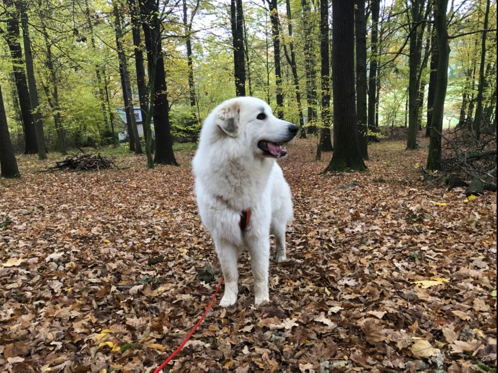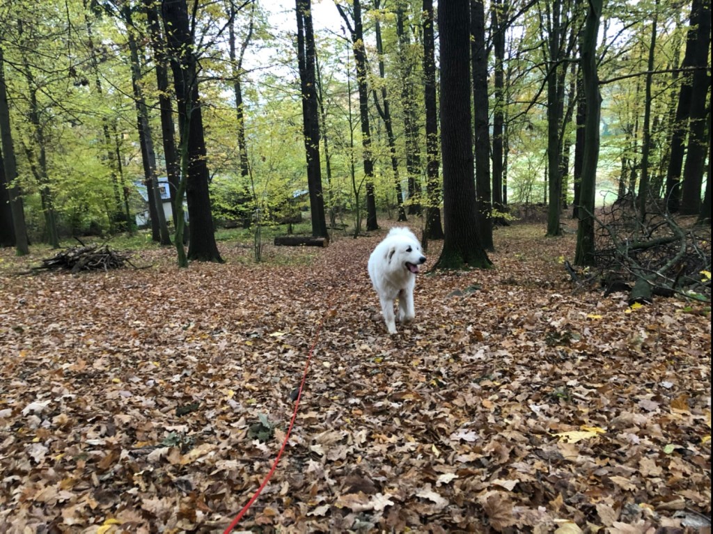 Wir sind weiter am Waldrand über Feld und Wiese und dann zur Frau Dobermann. Weiter zum Parkplatz und über die Wiese in den Wald und da sind wir dann rechts abgebogen und in Richtung von dem Waldhaus gewandert. Vorher sind wir aber abgebogen und den Berg hoch aus dem Wald raus auf die große Wiese. Und da habe ich wieder ganz schön geschnuffelt und wir sind geflitzt. Und es war alles grau, aber es hat nicht geregnet.