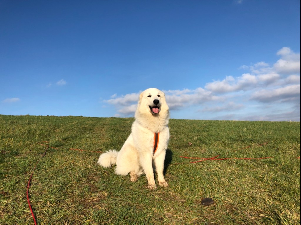 Wir sind zusammen über die ganze riesig große Wiese geschlendert. Meine liebe Sonne war auch da und der Pustewind. Der Pustewind ist ganz kalt. Meine liebe Sonne ganz warm. Und die Bella mag die liebe Sonne und den Pustewind. Jawoll! Auf dem Feld habe ich ganz viele Tauben gejagt. Hahahahaaa, das war lustig. Die sind im Schwarm hin und her geflogen, wenn ich angerannt gekommen bin. Dann haben wir erstmal eine Pause gemacht und uns auf die große Wiese hinter der Fuchsfarm gesetzt und ganz lange gekuschelt.