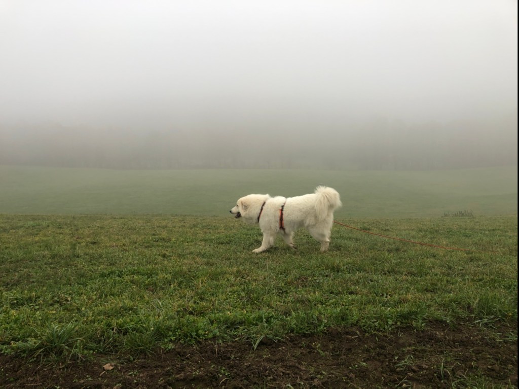 Heute habe ich wieder schön meinen Garten bewacht. Den ganzen Tag war dichter Nebel (Näääbl, sagt man!). Menschenomi und Menschenopi sind bei mir gewesen und ich habe auch immer mal jemanden angeschimpft. Manchmal schimpfe ich auch einfach nur so. Damit alle wissen, die Bella paßt auf!