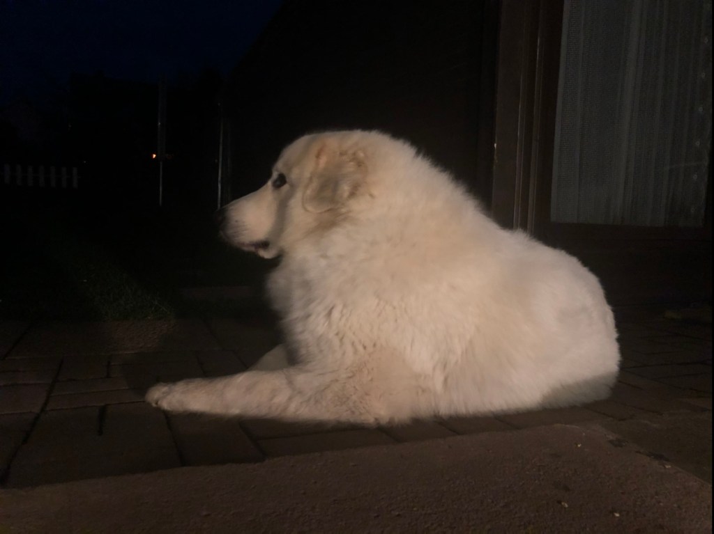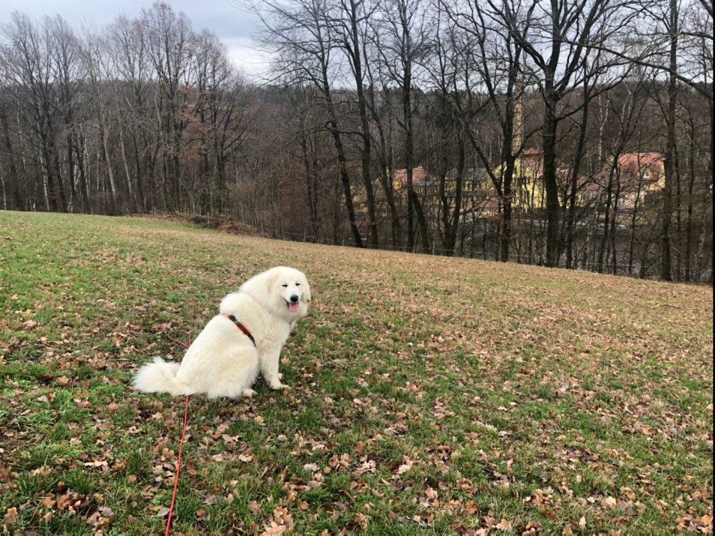 Da habe ich gewartet auf unseren Spaziergang. Mein großer Mensch geht immer mit mir spazieren. Immer! Dann war es soweit und wir sind losgewandert. Es war ganz trüb. Kein schönes Wetter, aber trocken. Wir sind zu meiner großen Feldwiese gegangen. Da habe ich dann den Bogolf gesehen. Das ist ein großer weißer Schäferhund. Den kenne ich. Aber der war schon weiter weg. Ich bin mit meinem großen Mensch über meine große Feldwiese gegangen. Dann sind wir quer über die große Wiese zum kleinen Wäldchen gegangen.