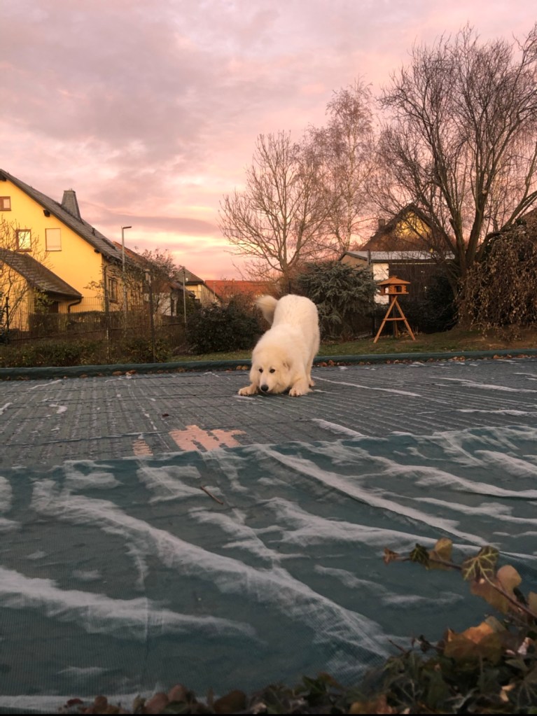Beim Üben bin ich aber ganz lieb gewesen. Ich habe auch ganz brav mitgemacht. Auch mit der Hera. Nur manchmal haben wir uns angezickt. Aber nur wenig. Wir sind heute ganzganz viel gelaufen. Damit die Menschen nicht erfrieren. Weiiil, es war frisch. Und dann war plötzlich Schluß. Da wurde es plötzlich zappenduster. Weiiil, die Strommaschine hat nicht mehr getuckert. Die Bella ist mit ihrem großen Mensch gucken gegangen. Aber mein großer Mensch konnte die Strommaschine auch nicht wieder anmachen. Da gab es keine Futterübung. Un wir sind dann nach Hause gefahren.