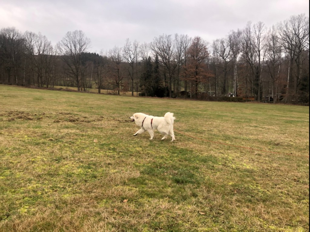 Von der Wiese sind wir ein Stück die Straße lang und dann habe ich meinen großen Mensch durch das kleine Wäldchen zum Feld und in mein Wohngebiet geführt. Ich kenne mich hier aus! Dann sind wir durch mein Wohngebiet nach Hause gegangen. Ich habe mich ausgeruht und dann meinen Garten bewacht.