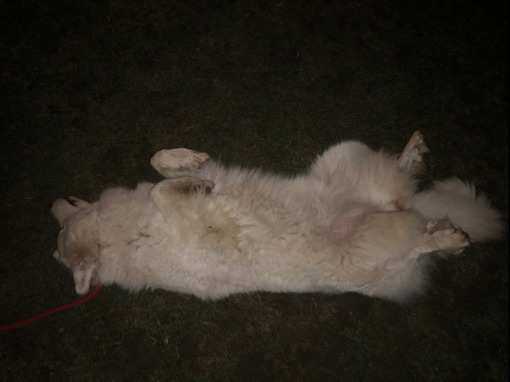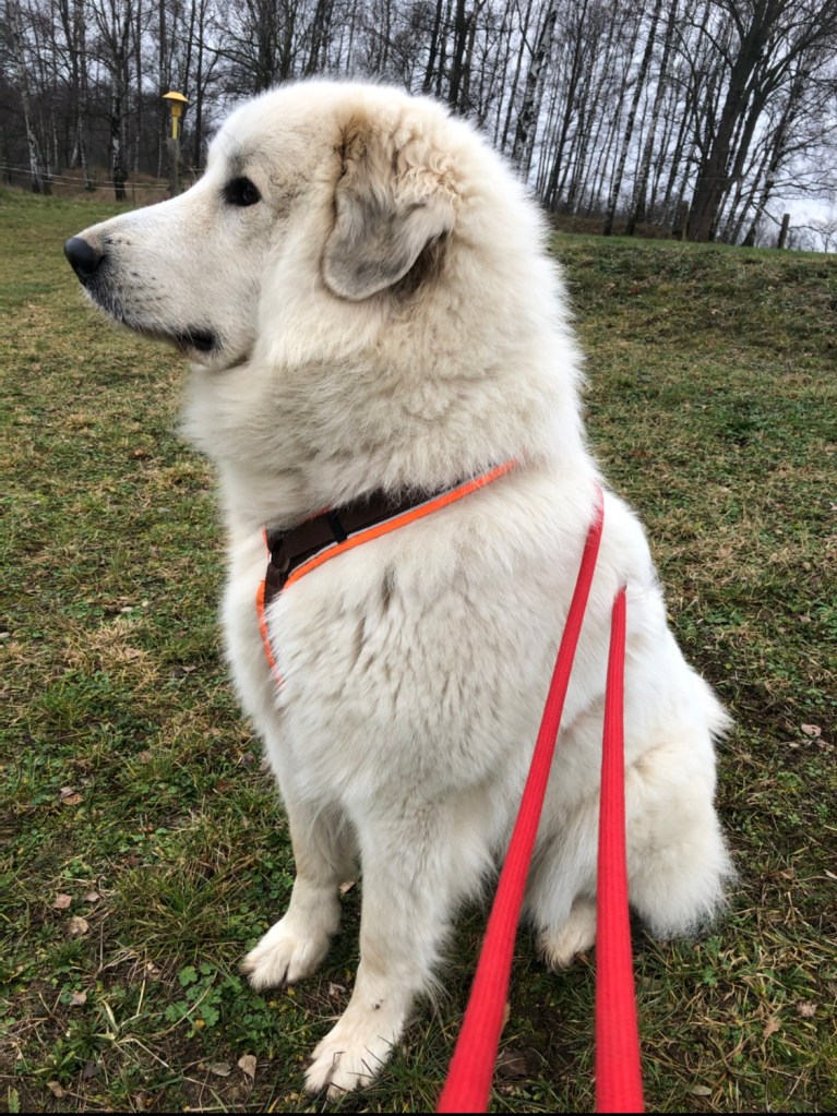 Die Bella hat bald Geburtstag. Im Mai! Da werde ich drei Jahre. Dann bin ich eine große Pyri! Jetzt bin ich noch klein. Und heute war ein ganz grauer Tag. Ich bin nicht grau. Mein Pyrifell ist champagnercremeweißfarben! Das sieht sehr schön aus. Besonders, wenn meine liebe Sonne da draufscheint. Aber die war heute nicht da. Die mag nur schönes Wetter.