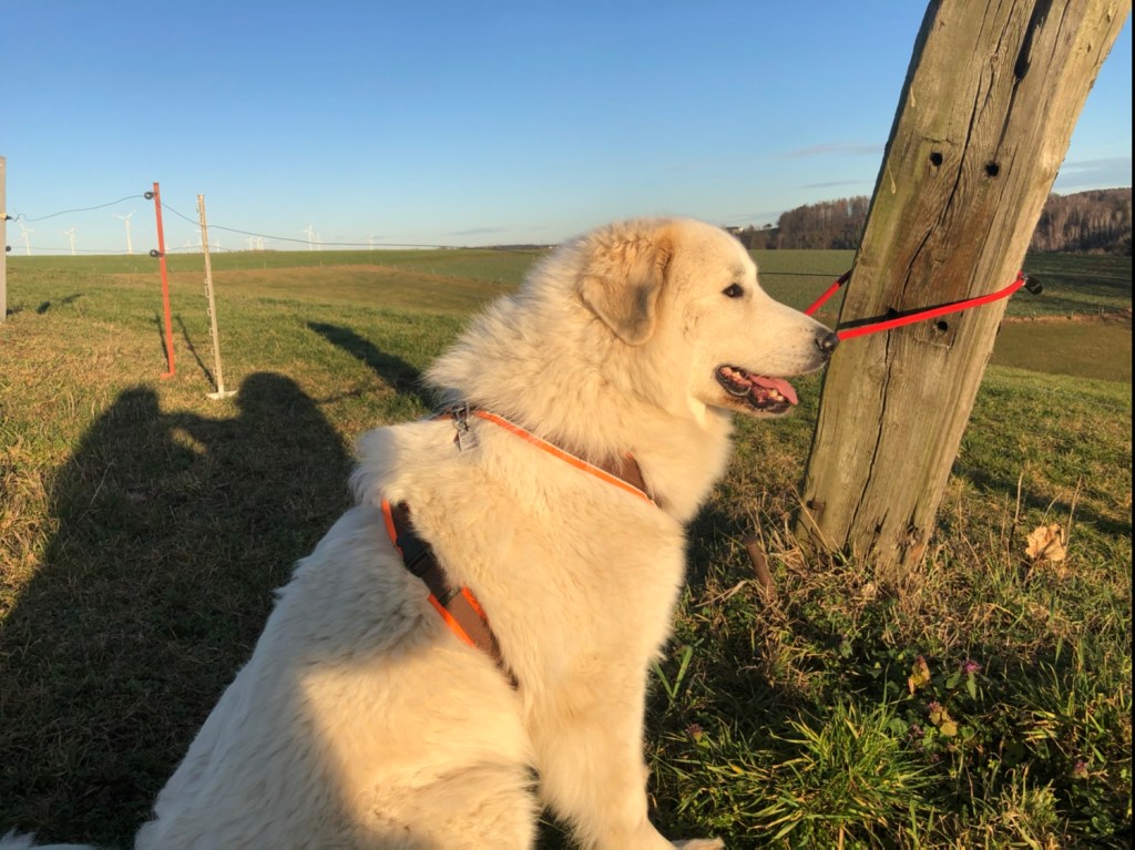 Nachmittags ist meine große Menschin mit mir zusammen spazieren gegangen. Wir sind auf meiner großen Feldwiese gewesen. Und meine liebe Sonne war auch mit. Das war ganz schön. Ich gehe gerne spazieren. Aber mein großer Mensch war nicht da.