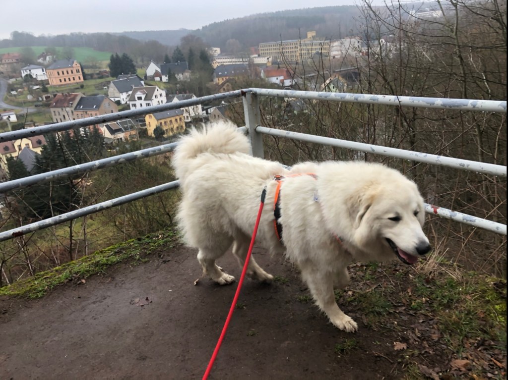 Nachmittags habe ich noch einen kleinen, gemütlichen Spaziergang gemacht. Eine ganz kleine Runde. Ich war wieder ganz brav. Ich muß ja mit meinem großen Mensch vorsichtig sein. Damit der nicht kaputt geht. Ist ja mein großer Mensch.