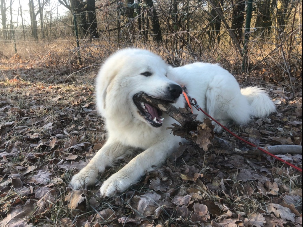 Die Rehe sind dann in den Wald gegangen und ich mit meinem großen Mensch auf die Wiese. Da konnte ich schön rumflitzen und schnuffeln. Und wir haben auch ein paar Übungen gemacht. Ich habe mit dann auch einen Stock gesucht und geknabbert. Danach sind wir nach Hause gegangen und da habe ich die Rehe nochmal im Wald gesehen.