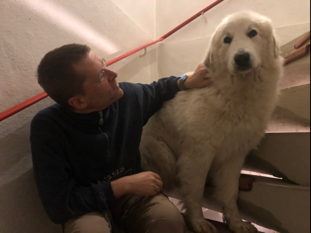 Dann bin ich zum Abschluß von dem schönen Tag noch mit meinem großen Mensch abendspazierengegangen. Durch mein Wohngebiet. Eine große Runde. Ich gehe gerne mit meinem großen Mensch spazieren. Und ich war ganz lieb.