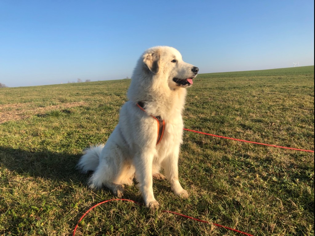 Mein großer Mensch ist heute zeitig nach Hause gekommen. Und mit mir spazieren gegangen. Wir sind zu meiner großen Feldwiese gegangen. Aber nicht drauf. Ich wollte zum Feldweg an den Waldrand. Und da sind wir die Straße weiter bis zu dem Feldweg gegangen. Ich habe dann wieder ganz viel geschnuffelt. Und die Schäferhunde am Waldrand haben mich und meinen großen Mensch wieder begrüßt.