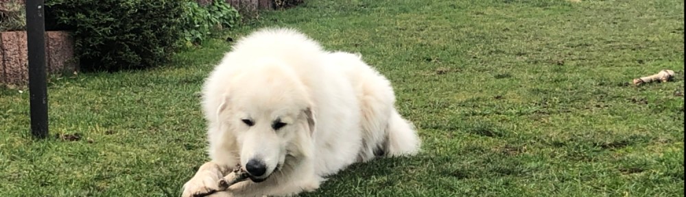Heute war ganz schönes Wetter. Ich bin den ganzen Tag in meinem Garten gewesen. Mein Menschenopi war bei mir und auch meine Menschenschwestern. Ich habe einen Knochen bekommen. Den habe ich aufgeknabbert. Der war ganz lecker.