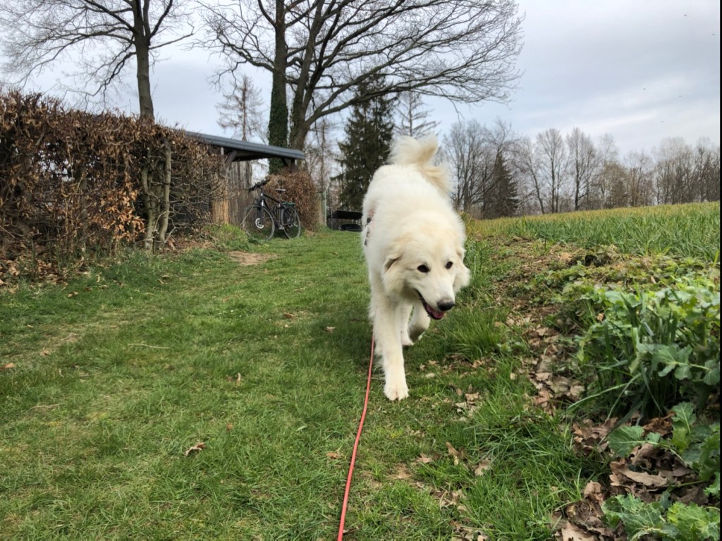 Nachmittags bin ich mit meinem großen Mensch spazieren gegangen und da ist meine große Menschenschwester auch mitgekommen. Heute geht es mir vielviel besser. Ich kann wieder ganz wild rumflitzen. Und frech sein und lachen. Die Bella kann lachen! Jawoll! Wir sind die große Straße lang zum Feldweg und dann an den Waldrand gegangen. Ich konnte wieder ganz viel und schön schnuffeln. Das gefällt mir. Über die Wiese sind wir dann zur Siedlung gegangen. Da habe ich meine Appenzeller Freundin getroffen. Die war nämlich auch spazieren und gerade nach Hause gekommen. Dann sind wir nach Hause gegangen.