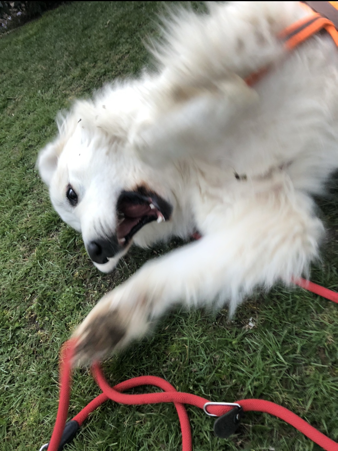 Nach dem Abendfuttern habe ich wieder mit meinem großen Mensch unseren Abendspaziergang durch mein Wohngebiet gemacht. Danach sind wir noch in meinem Garten gewesen. Da haben wir gekuschelt und dann „böse weiße Wölfin“ gespielt. Das bin ich, die „böse weiße Wölfin“. Ich gucke dann ganz grimmig und beiße meinen großen Mensch in den Arm und die Hand. Aber ganz vorsichtig. Damit nichts kaputt geht. Ich kann den Arm ja nicht abbeißen. Da hätte ich ja dann nichts mehr um „ böse weiße Wölfin“ zu spielen. Ich bin ja nicht blöde! Ich bin eine Pyrenäenberghündin!