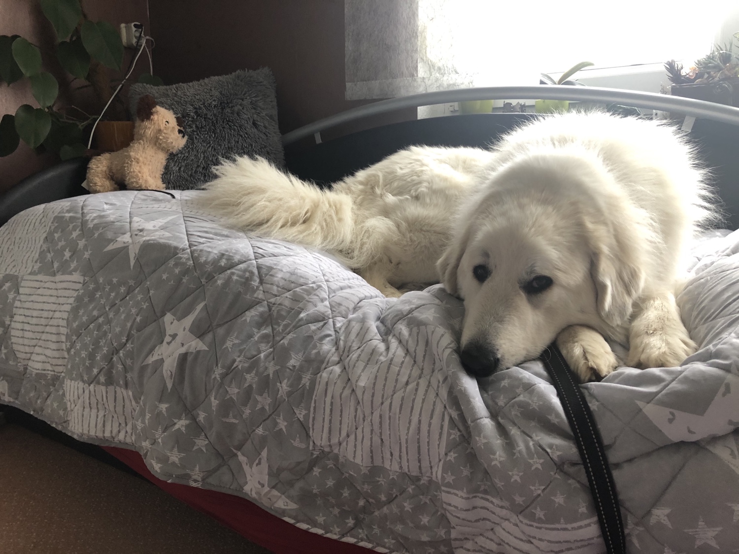 Dann durfte ich mit rein zu meiner großen Menschenschwester ins Zimmer und da bin ich dann fast den ganzen Vormittag mit meinen Menschenschwestern gewesen. Ich war ganz brav! Aber ich habe mich auch mal auf das Bett gelegt. Das darf ich nicht. Aber meine große Menschenschwester liegt da auch manchmal drauf und da kann die Bella das ruhig auch mal machen. Ich bin eine Pyri und habe ein kleines stures Köpfchen. Und das sieht sehr schön aus, wenn ich da drauf liege.