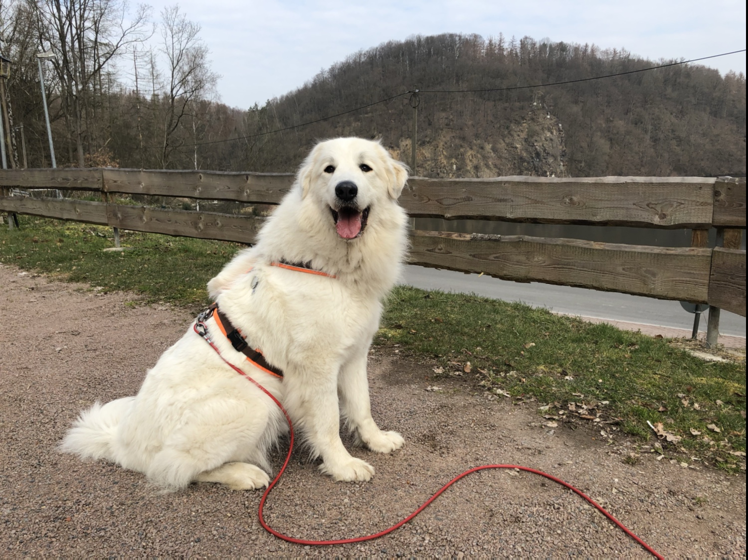 Mein großer Mensch hat auch gefrühstücksfuttert. In der Wohnung, wo meine Menschen wohnen. Ich habe auch eine Wohnung. Das ist meine Kellerwohnung. Aber noch viel lieber bin ich in meinem Garten. Da habe ich gewartet. Und dann sind wir zusammen spazieren gegangen. Nur mein großer Mensch und ich, die Bella. Meine liebe Sonne haben wir aber auch mitgenommen.