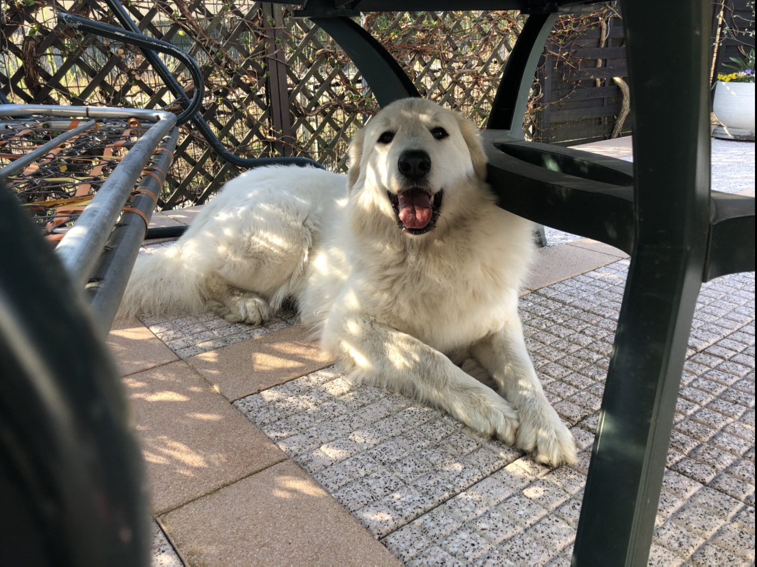 Nachmittags bin ich wieder mit meinem großen Mensch in meinem Garten gewesen. Wir haben den Gartenweg sauber gemacht. Mit dem ganzganz lauten Sprühwasser. Ich hatte ganz nasse Pyripfötchen. Meine große Menschenschwester war auch bei mir in meinem Garten. Aber dann mußte ich ja helfen. Dann haben wir alles fein aufgeräumt. Da war dann mejne kleine Menschenschwester auch da. Die ist von ihrem Spaziergang gekommen. Ich bin dann aber mit meinem großen Mensch auf meine schöne saubere Terrasse gegangen. Weiiil, wir hatten beide nasse Pfötchen.
