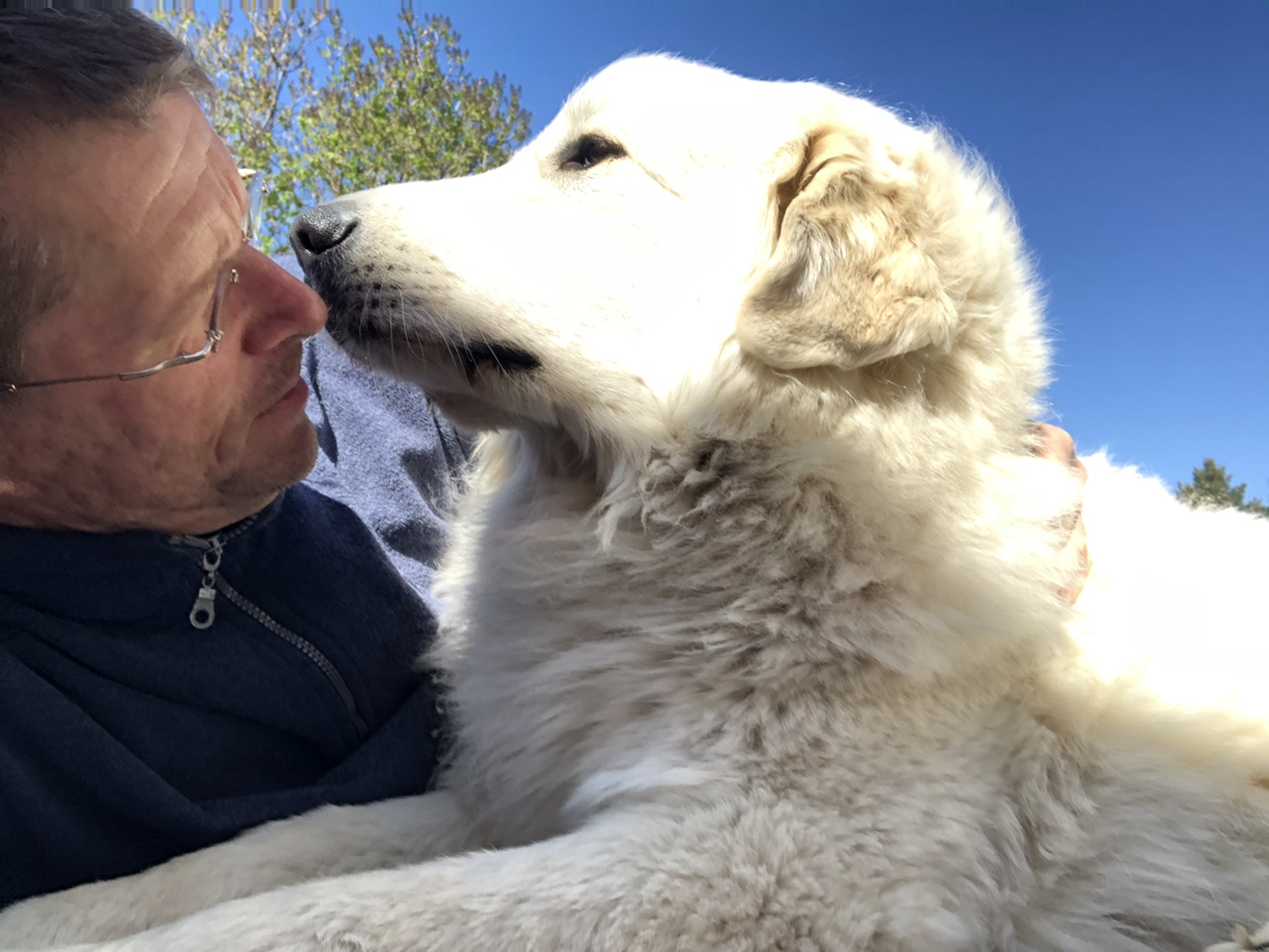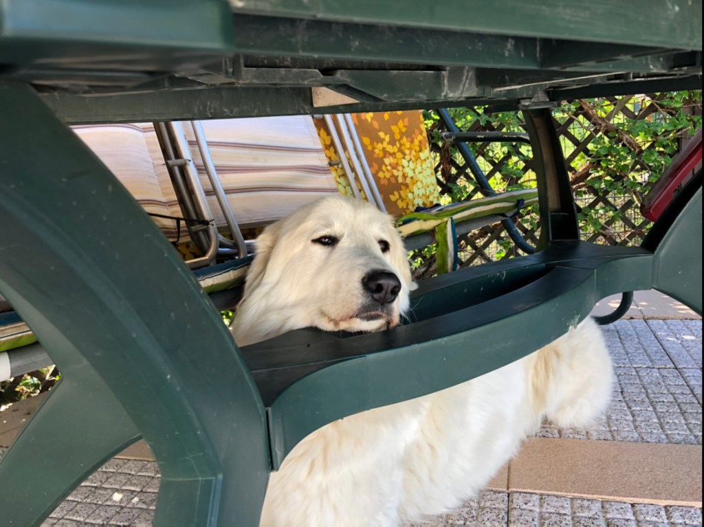 Zuerst sind wir zusammen auf meiner Terrasse gewesen. Und da haben wir gespielt und gekuschelt. Und dann waren Menschenomi und Menschenopi auch noch mit im Garten. Und da habe ich auch gekuschelt. Und dann ist meine große Menschenschwester noch mit da gewesen und die hat auch mit mir gespielt und natürlich gekuschelt. Ich bin doch so verschmust. Und dann ist auch noch mejne kleine Menschenschwester gekommen. Die hatte eine Freundin mit. O, ooo, da muß die Bella aufpassen. In meinen Garten darf nicht jeder. Aber die Freundin von meiner kleinen Menschenschwester schon. Ich habe die aber erst mal abgeschnuffelt und dann auch immer schön beobachtet. Ich bin eine Herdenschutzhündin, ich muß auf alles aufpassen, jawoll!