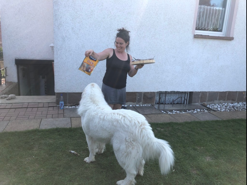 Nach dem Grillieren haben wir noch unseren Abendspaziergang gemacht. Da fing es an zu regnen. Die große Menschin hat inzwischen den Garten aufgeräumt. Und unterwegs hat es immer mehr geregnet. Aber uns stört das nicht. Auf dem Heimweg ist der Regen weniger geworden. Und zu Hause war dann alles vorbei. Aber wir waren ganz pitschpatschnaß! Das ist gut. Die Bella wird gern naß geregnet. Weiiil, da kommt mein großer Mensch mit meinem Pyrenäenberghündinnentrockenrubbelhandtuch und rubbelt seine Bella wieder ganz trocken.