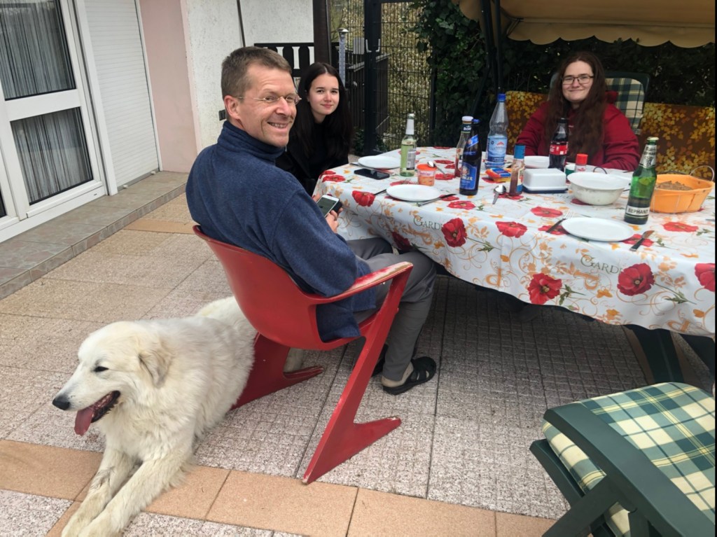 Da hat die Bella dann noch Bratwürst gegessen. Bratwürste! Bratwürschte! Mit „sch“! Ich verrate aber nicht, wieviele. Und Knochen habe ich noch geknabbert. Vom Kollidett, oder wie das heißt. Also, das war so ein winziger Knochen am Fleisch, das mein großer Mensch gefuttert hat. Und das war lecker. Und grillierte Brotscheibe habe ich auch gefuttert, weiiil, ich bin doch so lieb.