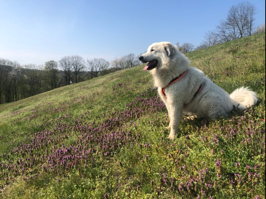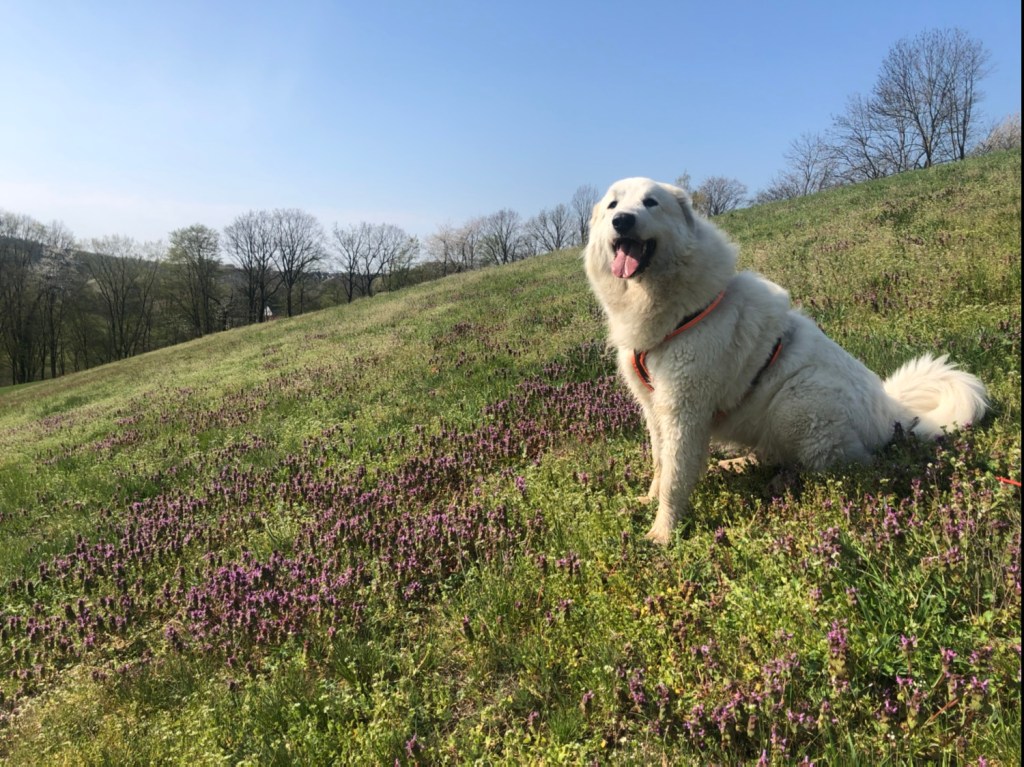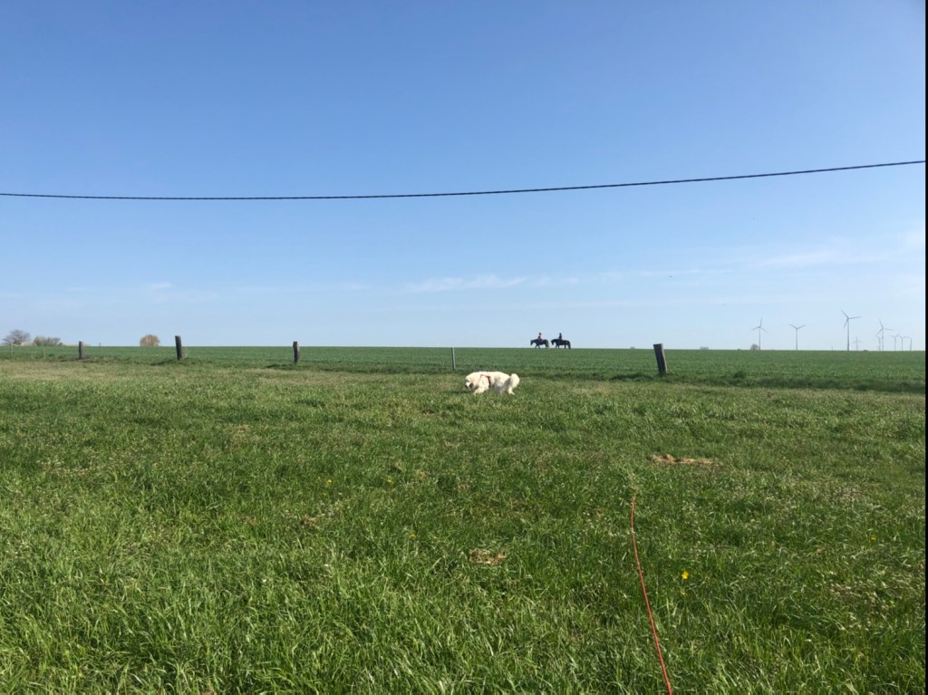 Wir sind dann schön über die große Wiese und den Hang hoch gewandert. Dann wollte mein großer Mensch nach Hause und ich bin den Weg lang. Aber ich wollte dann doch noch auf die Rehwiese am Wald. Und da habe ich meinen großen Mensch angeguckt. Mit meinen Pyriaugen. Den dunklen. Wißt ihr ja. Und da sind wir dann noch zusammen auf der Rehwiese am Wald gewesen. Auf dem Heimweg haben wir dann noch Pferde getroffen. Die sind ganz groß. Die habe ich mir angeguckt. Ganz genau angeguckt habe ich die.