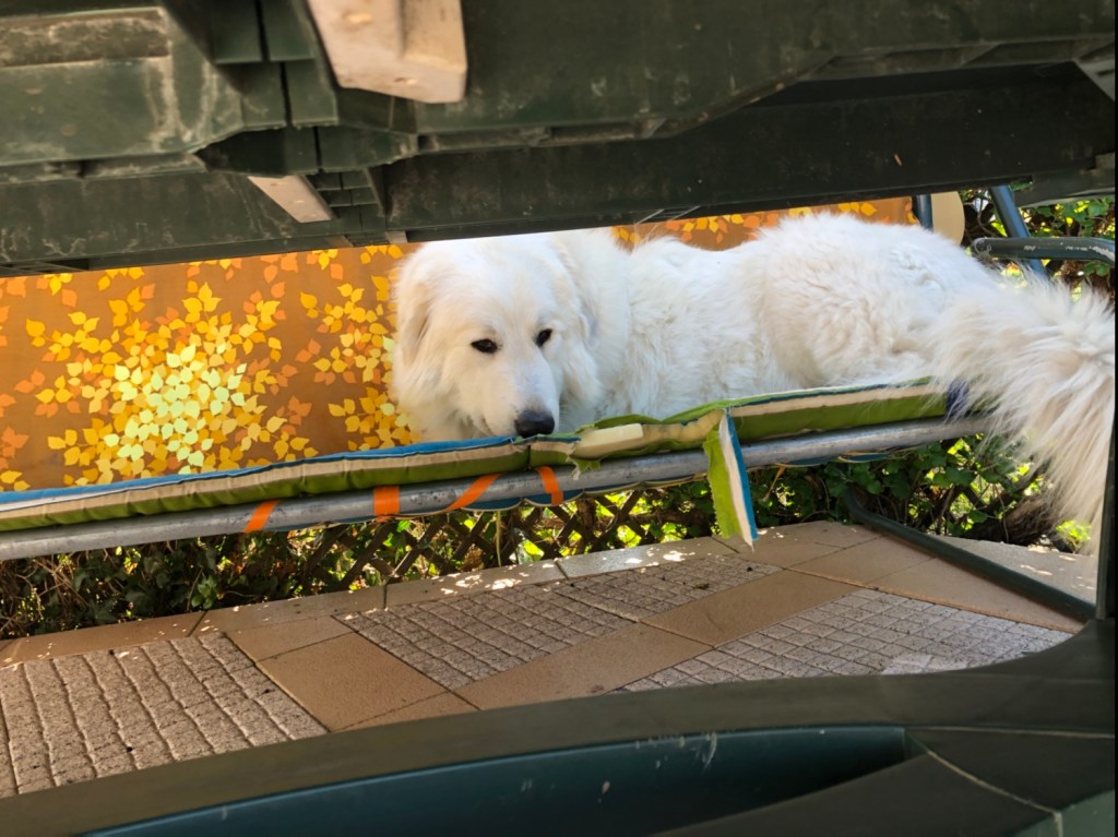 Wir sind jetzt eine kleine Gruppe, heute zu sechst: der Lennox ist der einzige Junge, dann noch die Roxy, die Emma, die Kira und die Ida, die ist neu und ganz lieb, mit der mußte ich gar nicht schimpfen. Und die Bella ist noch in unserer Gruppe. Das bin ich, ich bin eine Pyrenäenberghündin. Ich muß auf alle aufpassen, weiiil, ich bin die einzige Herdenschutzhündin in unserer Gruppe, da bin ich nun mal verantwortlich 🐶🤷🏼♂️🐶.
