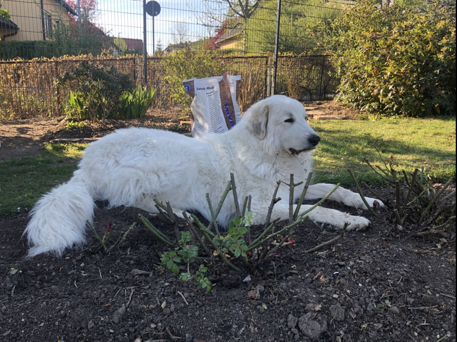 Zu Hause habe ich mich ausgeruht und meinen Pyriprinzessinnenschönheitsschlaf gemacht. Nachmittags sind meine Menschenschwestern wieder bei mir in meinem Garten gewesen und haben Ball gespielt. Nachmittags waren dann auch meine großen Menschen bei mir im Garten.