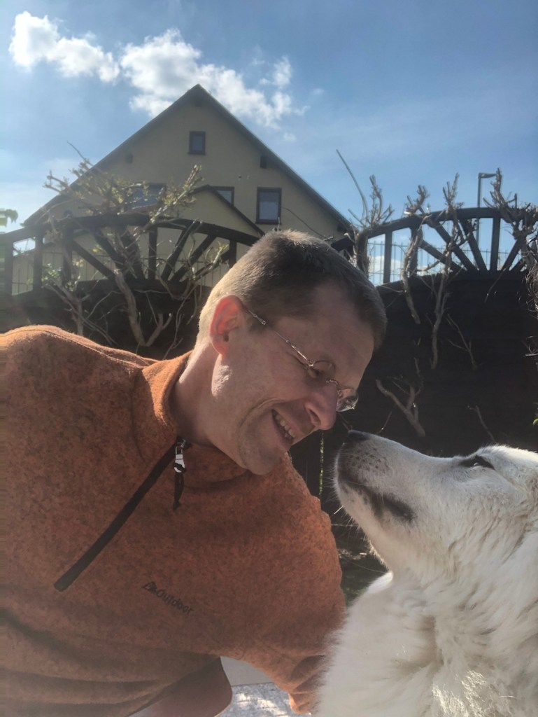 Nachmittags sind wir zusammen in meinem Garten gewesen. Das Wetter war ja ganz schön. Meine große Menschin hat noch Gartenarbeit gemacht. Ich habe gekuschelt. Mit meinem großen Mensch. Wir hatten ja viel nachzuholen. Und Menschenomi und Menschenopi sind auch mal im Garten gewesen.