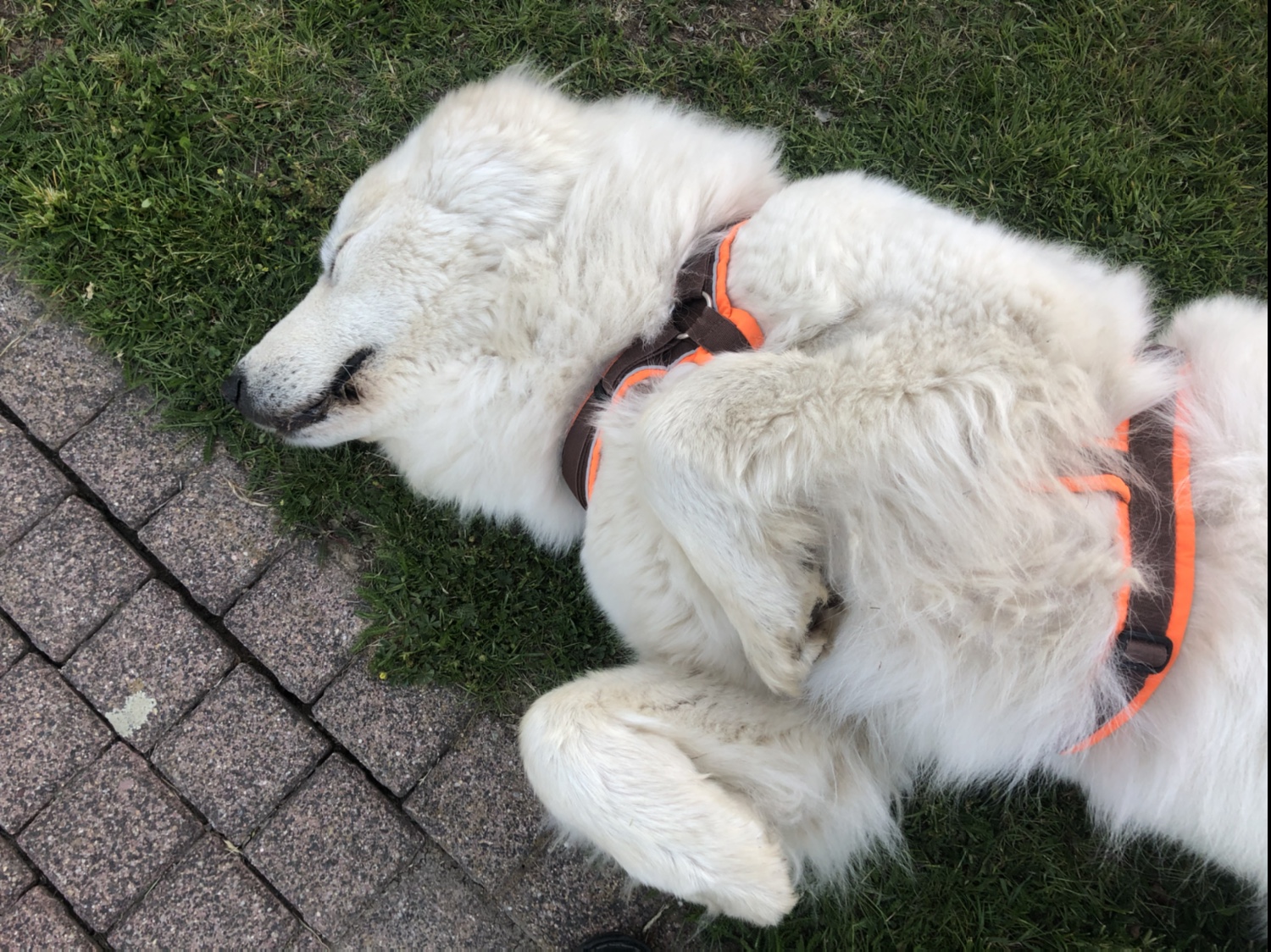Durch die Siedlung sind wir dann durch und noch eine klitzekleine Runde durch mein Wohngebiet. Bei der Camy vorbei. Da habe ich eine Pause gemacht. Ich muß ja warten, vielleicht will die Camy mit ihrer kleinen Tochter rauskommen zum Zickenalarm. Kann man ja nicht wissen. Es war aber alles ruhig. Da sind wir weitergelaufen. Nur ein kleines Stück. Dann habe ich eine Pause gemacht. Picknickpause. Ich habe Trockenfutter von meinem großen Mensch bekommen. Aus der Hand gefüttert. Wie es sich für eine Prinzessin gehört. Und danach sind wir dann nach Hause gegangen.