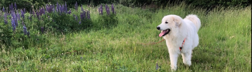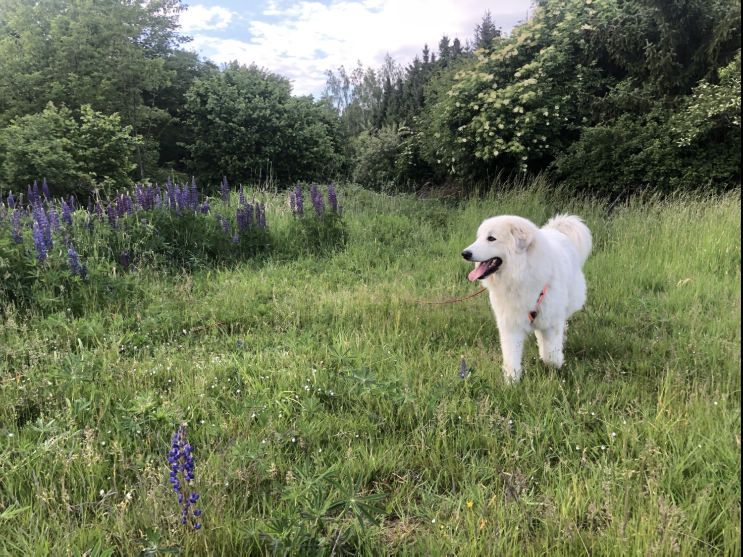 Ich bin mit meinem großen Mensch durch das hohe Gras geflitzt. Das ist schön. Das hohe Gras ist viel höher als die Bella. Und die Bella ist ziemlich groß. Und dann sind wir zu den Lumpinnen gegangen. Das sind Blumen und die sind schön. 🐶🤔 Häää? Lupinen? 🐶🤔 Nööö, die heißen Lumpinnen. Die Bella sagt Lumpinnen. Und die sehen schön aus.