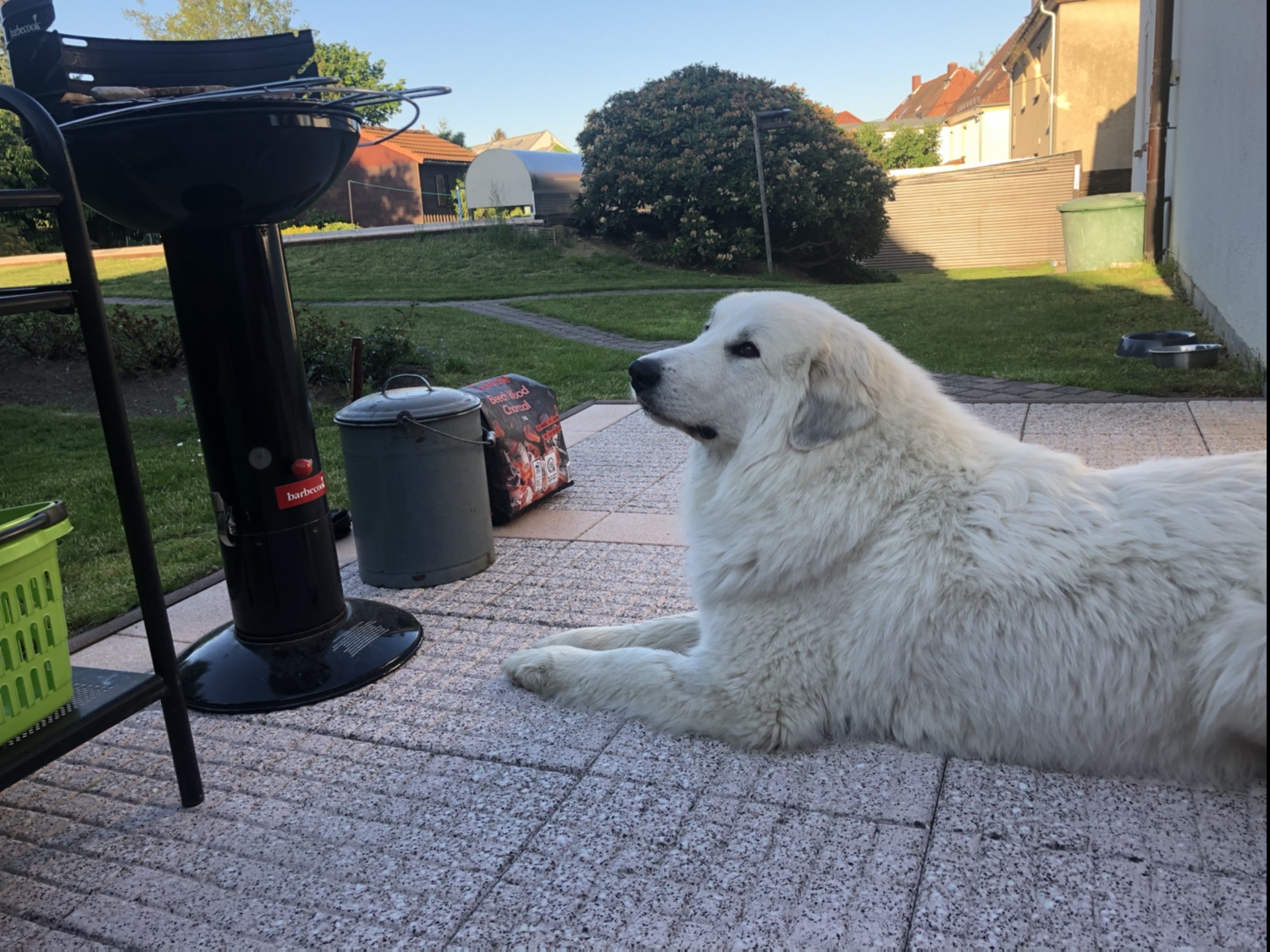 Nach dem Grillieren bin ich noch eine kleine Runde mit meinem großen Mensch durch mein Wohngebiet gelaufen. Und dann haben wir noch alles aufgeräumt, haben gekuschelt und dann bin ich rein in meine Kellerwohnung zum Knabbern und Schlummern. Gute Nacht! 🐶👸🏼