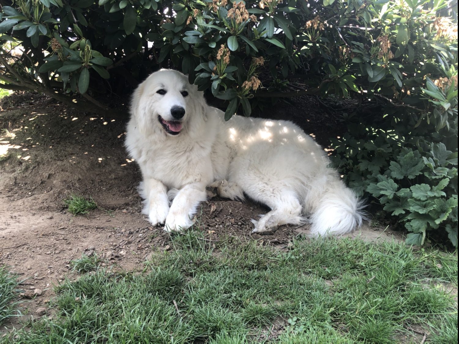 Ich bin dann wieder schön in meinem Garten gewesen und habe alles bewacht. Heute war ein schönes Wetter. Da liege ich viel im Schatten. Auf meiner Terrasse oder auf meinem schönen Liegeplatz unter dem Roten Dendron, der weiß-rosa blüht. Wenn er blüht.