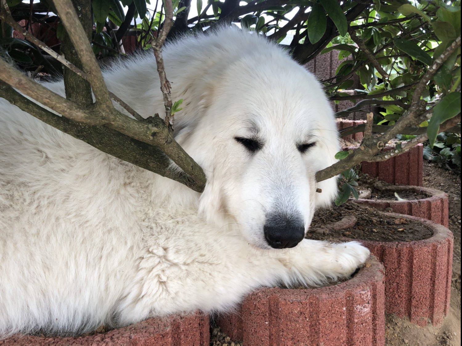 Zu Hause habe ich mich dann ausgeruht und Pyriprinzessinnenschönheitsschlaf gemacht. Meine großen Menschen sind nochmal weggefahren. Später sind sie wieder nach Hause gekommen und da hat mein großer Mensch weiter am Pool gebaut. Heute hat er den Fußboden wieder aufgebaut. Meine große Menschin hat auch Gartenarbeit gemacht. Damit mein Liegeplatz ganz schön wird.