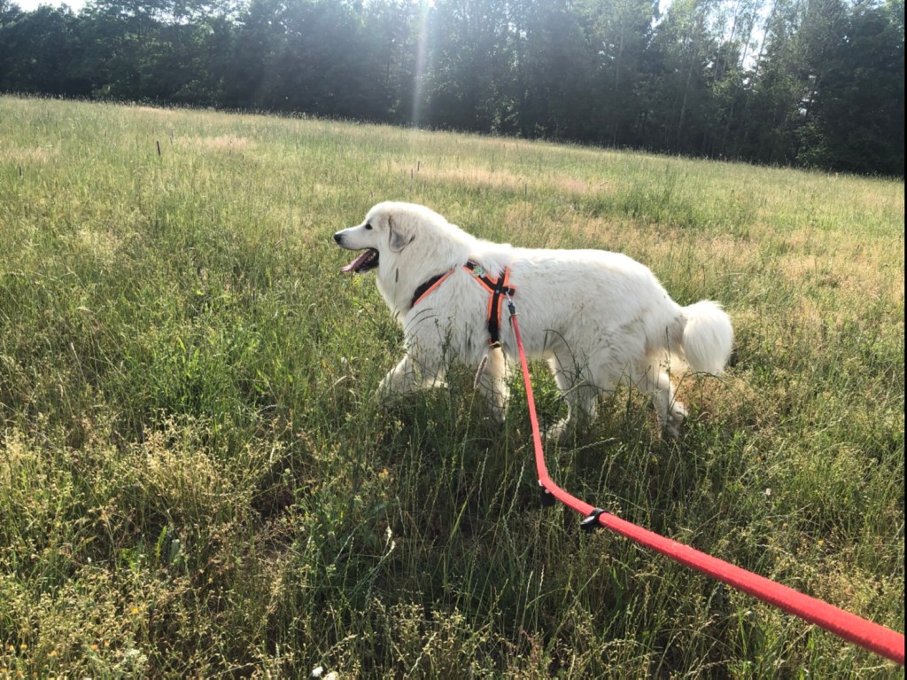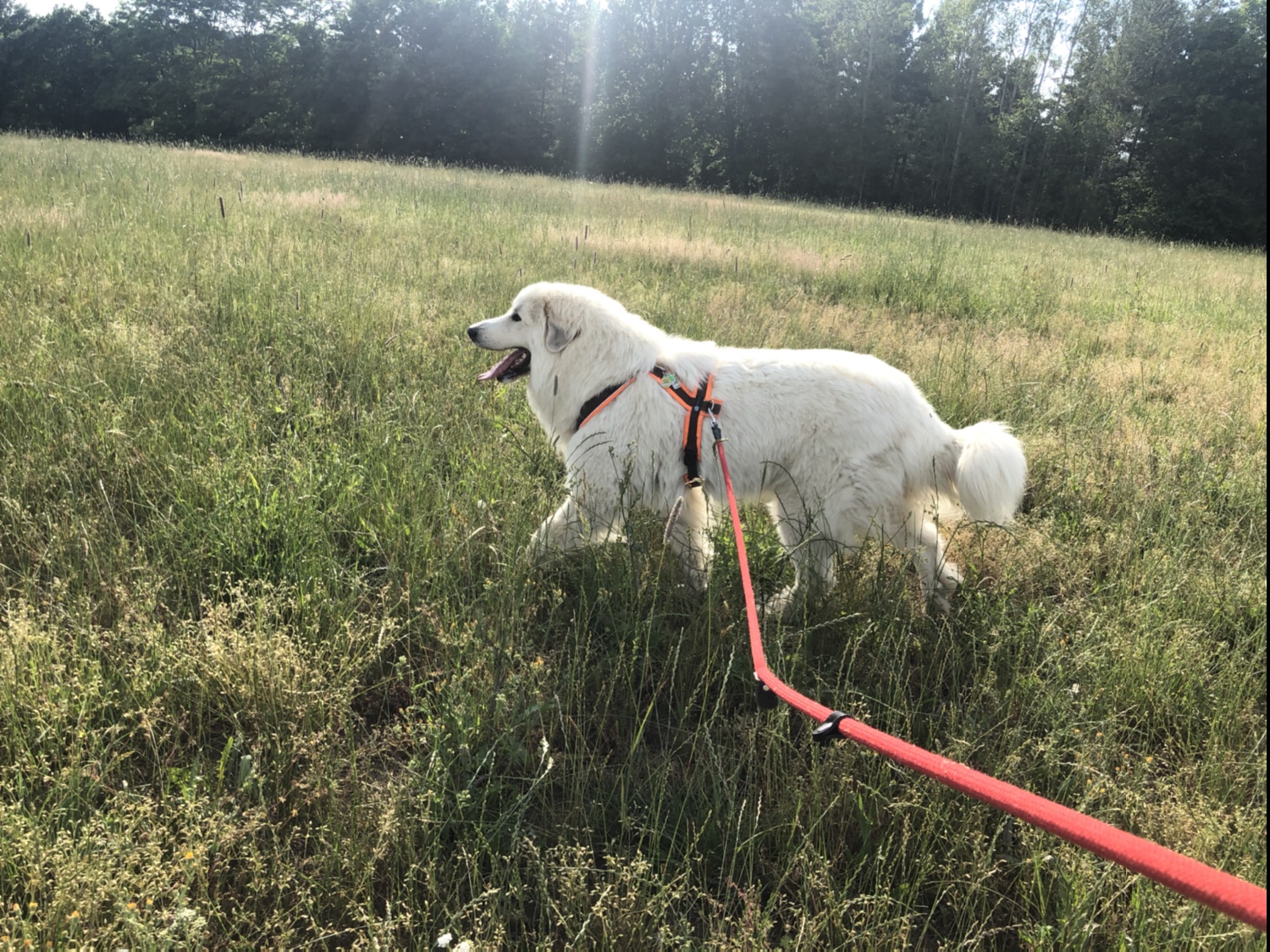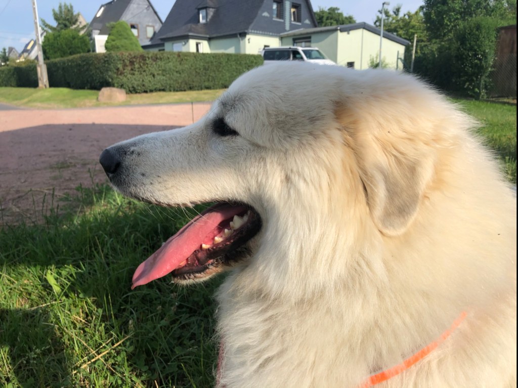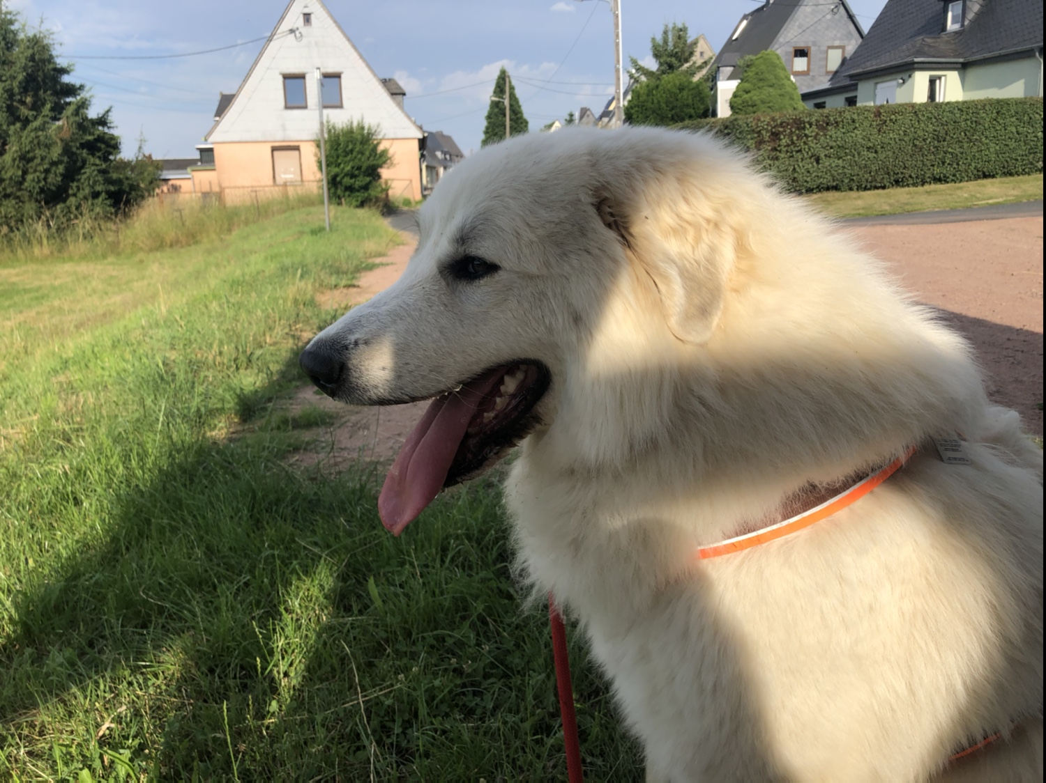 Nach dem Abendfuttern bin ich noch mit meinem großen Mensch spazieren gegangen. Wir sind die große Straße lang, am Feldweg zu meiner großen Feldwiese vorbei und weiter die Straße bis zum Feldweg. Dort konnte ich dann ganz gemütlich schnuffeln. Bis wir zu den Wochenendhäusern am Waldrand gekommen sind. Schäferhund und Kangalin waren heute nicht da. Dafür der kleine Hund nebenan.